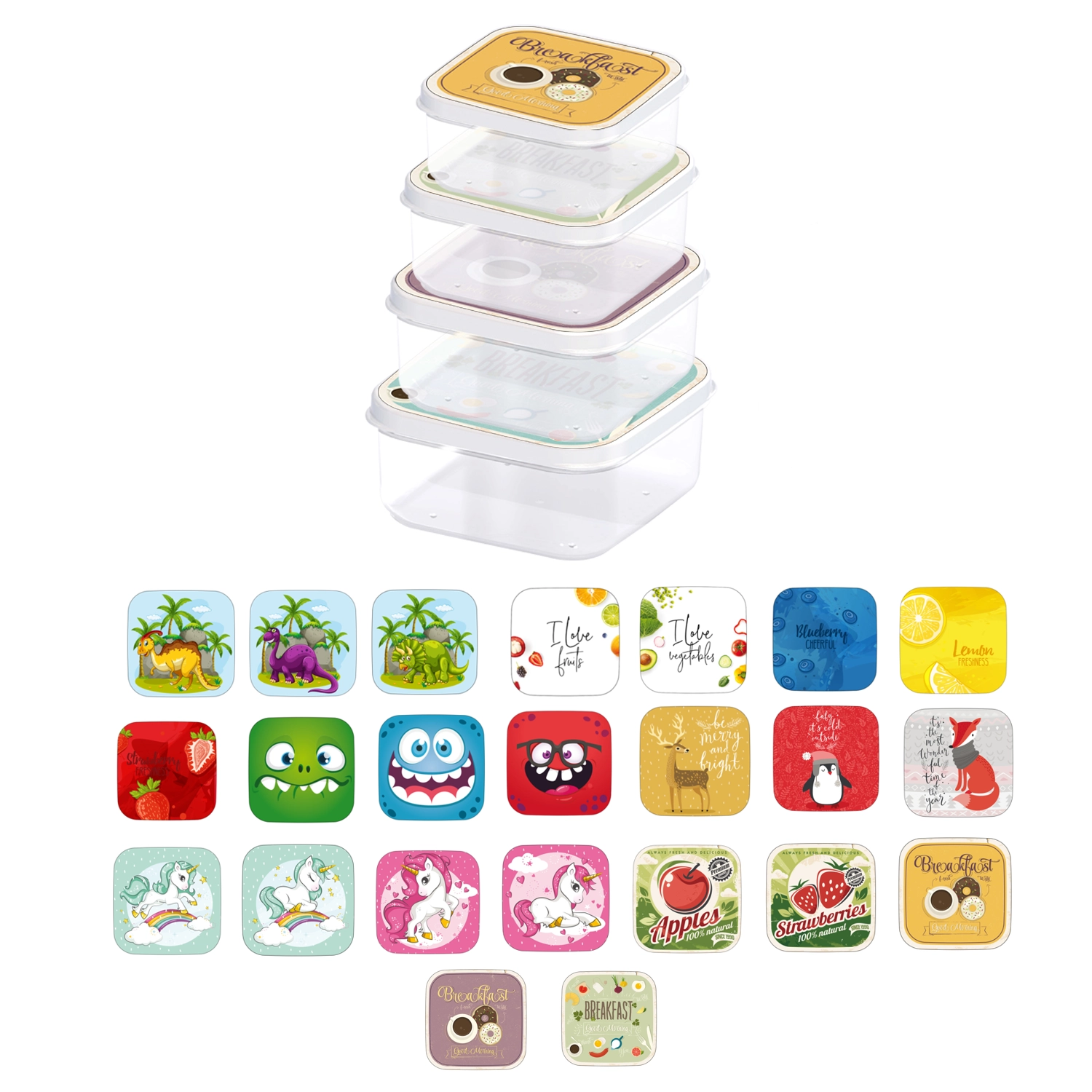 Avec cet ensemble de 4 boîtes carrées, vos collations et petits aliments seront toujours rangés de manière claire et hygiénique. Les boîtes sont fabriquées en plastique résistant et sans danger pour les aliments, et les couvercles aux motifs joyeux encouragent les enfants à les utiliser de façon autonome.