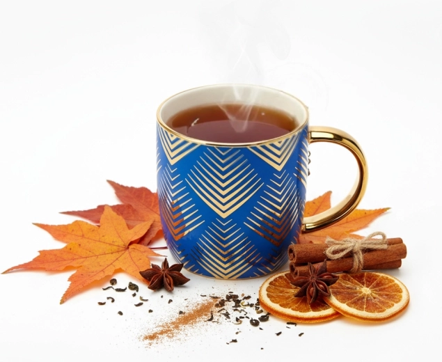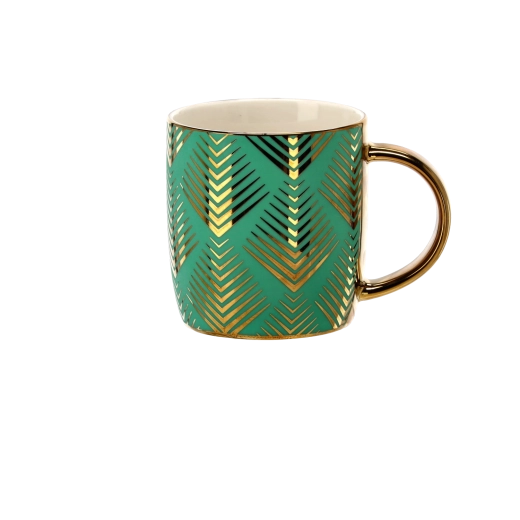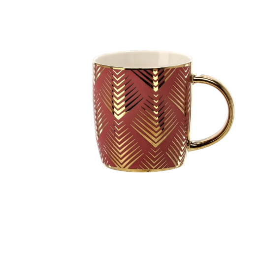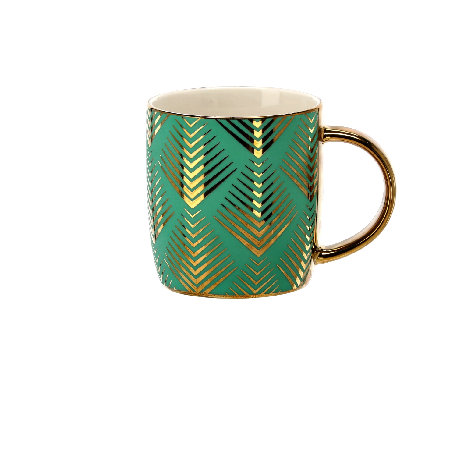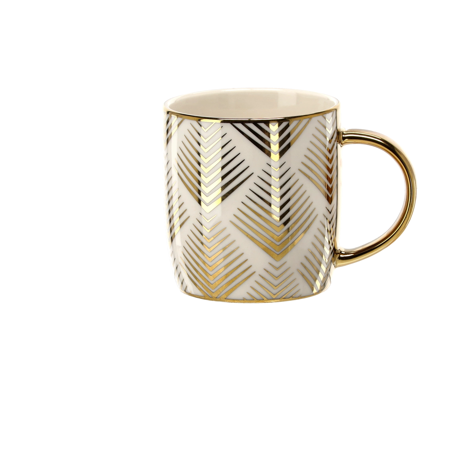 Une décoration dorée métallique au motif géométrique chevron confère à la tasse un aspect premium et cadeau qui se démarque dans tout intérieur.