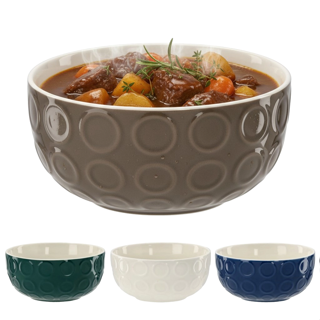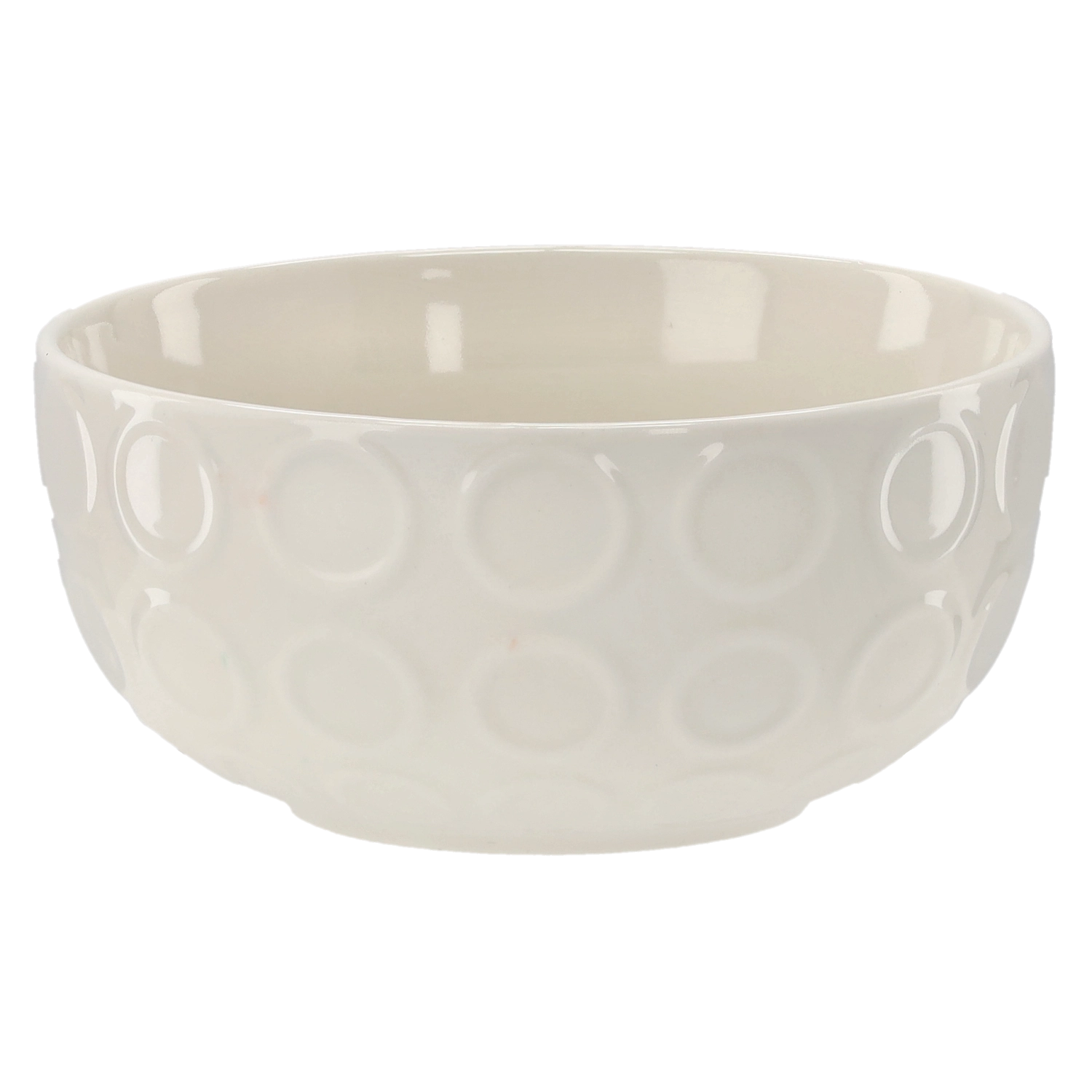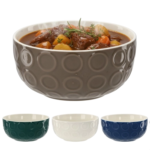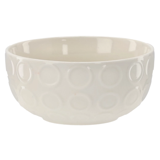 Bol en porcelaine stylé d’une capacité de 550 ml avec motif circulaire en relief, idéal pour les soupes, céréales et salades. Céramique résistante, entretien facile et design intemporel qui s’intègre parfaitement à toute cuisine. Compatible lave-vaisselle et parfait pour un usage quotidien.