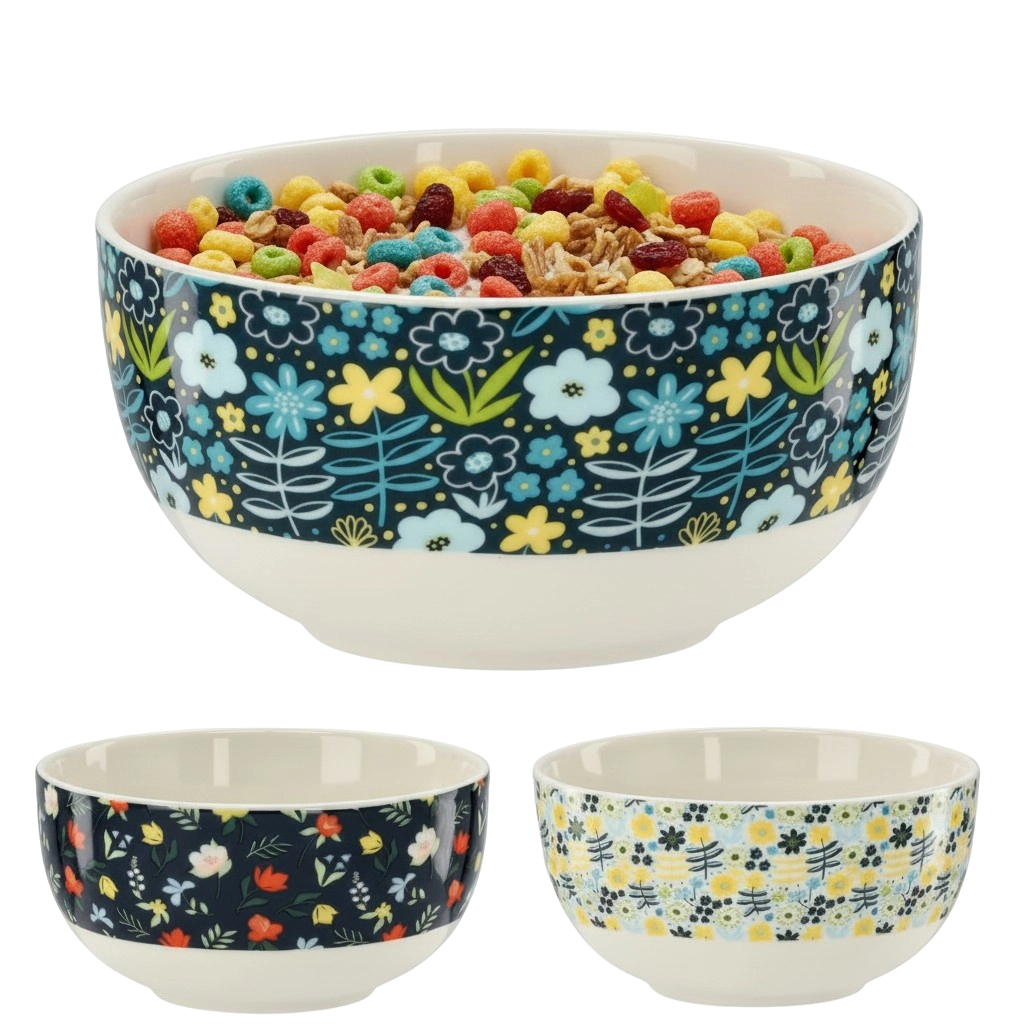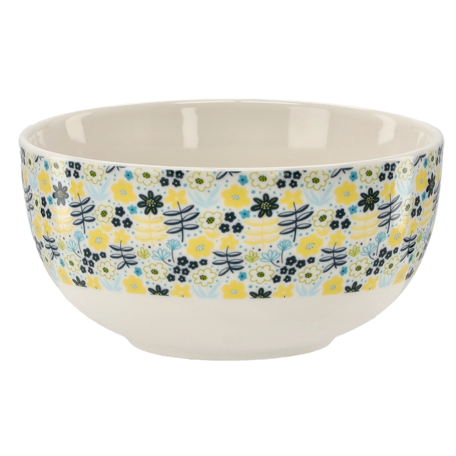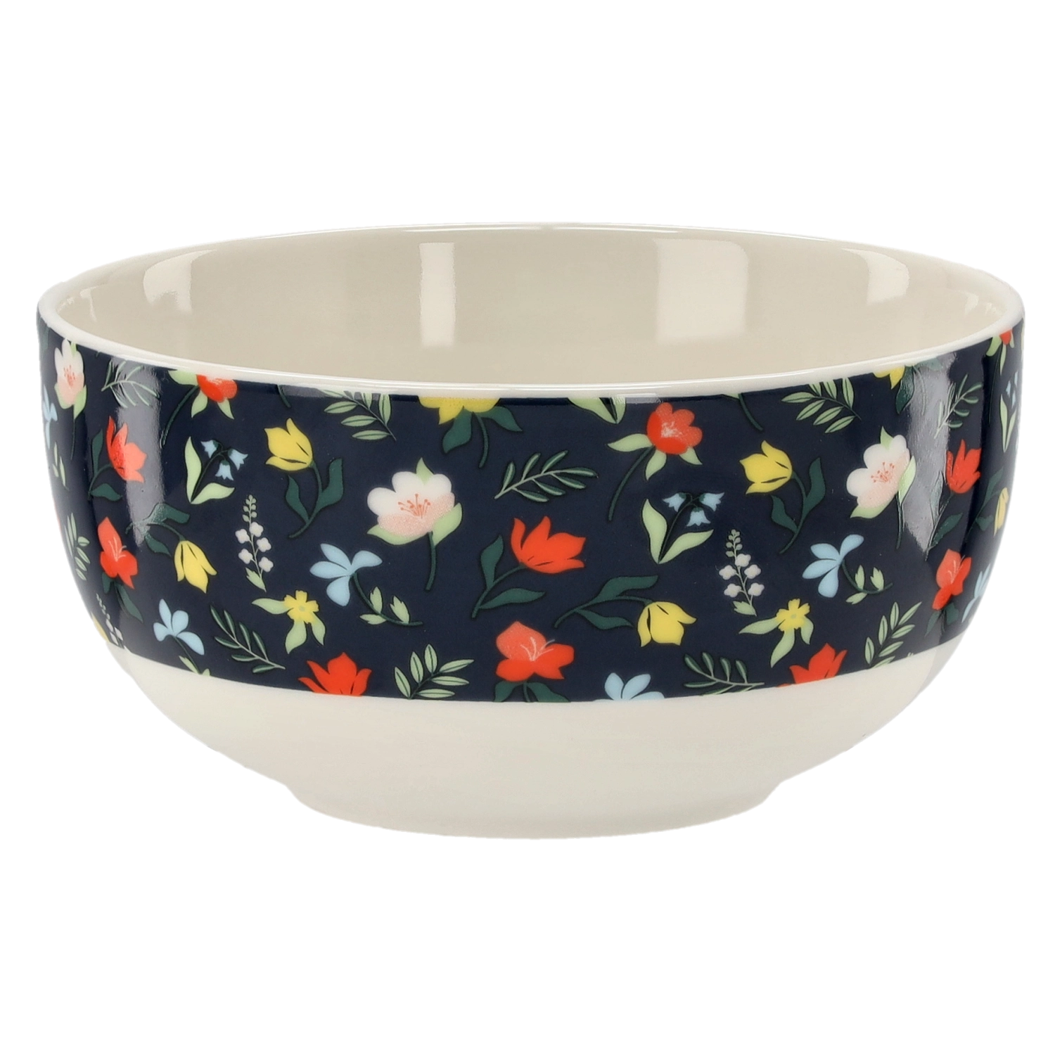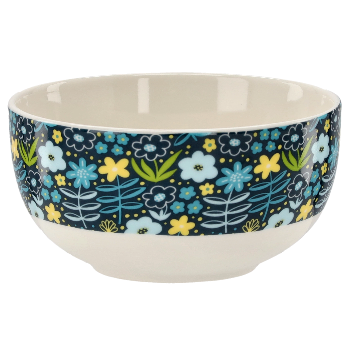 Apportez du charme à votre table avec ce bol en porcelaine à motif floral. Sa surface brillante, son intérieur blanc et sa large bande décorative aux fleurs colorées offrent une allure fraîche et intemporelle. Le volume de 550 ml est idéal pour les céréales du matin, les soupes, les salades ou de petites garnitures.