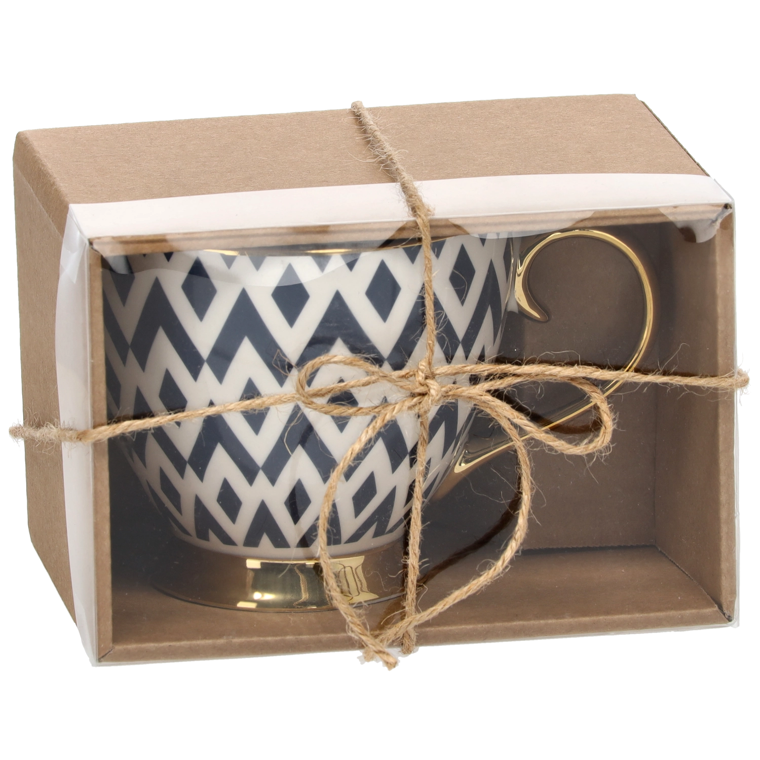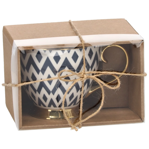 La tasse est fabriquée en porcelaine de haute qualité, résistante et facile à entretenir. L’anse ergonomique et le pied stable offrent un confort d’utilisation et une tenue sûre sur la table. Les différents motifs géométriques confèrent au produit un caractère unique et en font également une excellente idée cadeau.