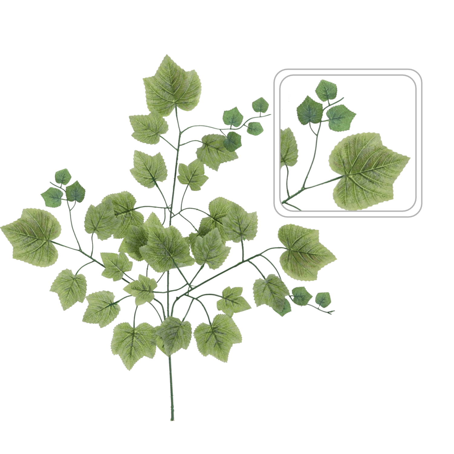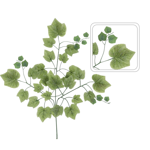 La branche artificielle de vigne apporte un look naturel à tout espace, sans les contraintes d’entretien. Ses feuilles réalistes et sa fabrication soignée en matériaux synthétiques de qualité garantissent une bonne résistance aux influences extérieures et une longue durée de vie. Grâce à ses dimensions compactes de 69 × 57 cm, elle convient aussi bien aux petites qu’aux grandes compositions.