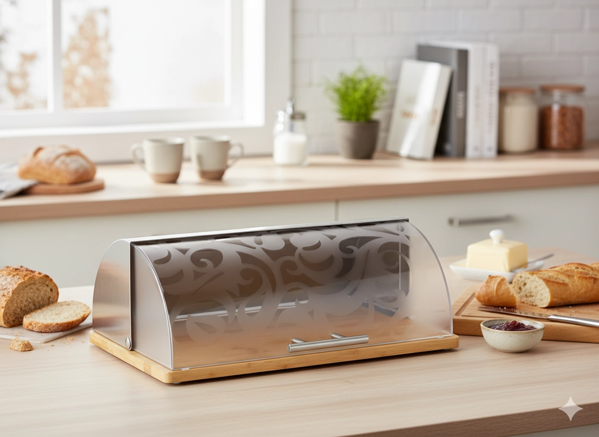 La boîte à pain CANELLA associe un bambou naturel à un couvercle roulant en acrylique translucide au décor subtil. Grâce aux ouvertures de ventilation, elle garde les produits de boulangerie frais plus longtemps, l’ouverture à enroulement assure un accès rapide et la base en bambou stable apporte style et ordre à votre cuisine.