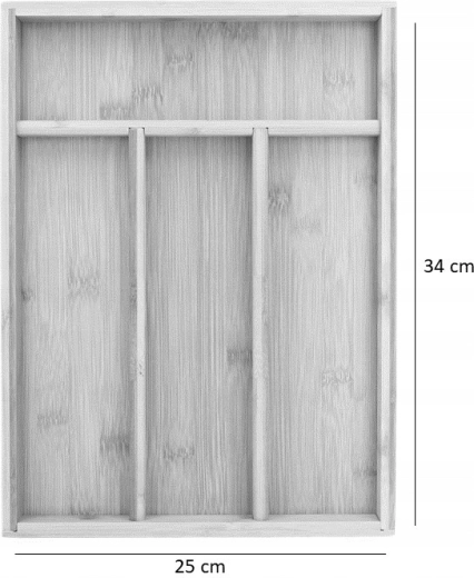 Organiseur à quatre segments en bois de bambou de qualité, alliant fonctionnalité et esthétique dans la cuisine. Grâce à quatre compartiments séparés, vous triez facilement les couverts et les petits ustensiles de cuisine pour les retrouver rapidement. Le bambou naturel est solide, résistant à l’humidité et doux pour la surface des couverts ainsi que l’intérieur du tiroir.