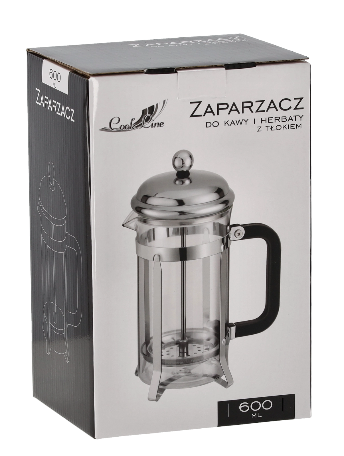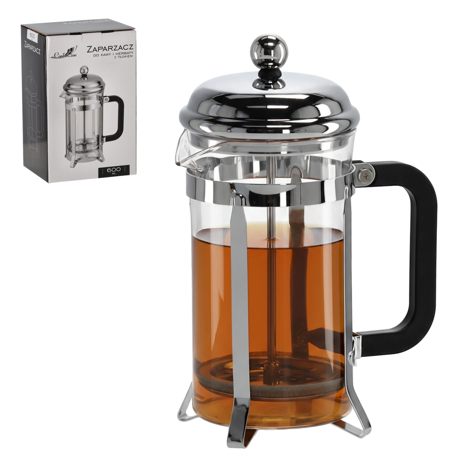 Cafetière à piston pratique de 600 ml pour préparer un café, un thé et des infusions de plantes frais. Grâce à son mécanisme à piston simple, elle sépare facilement le marc et garantit une boisson claire et aromatique. Fabriquée en verre borosilicate résistant et en acier inoxydable pour une longue durée de vie, avec une poignée ergonomique pour un service sûr et confortable.
