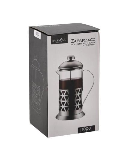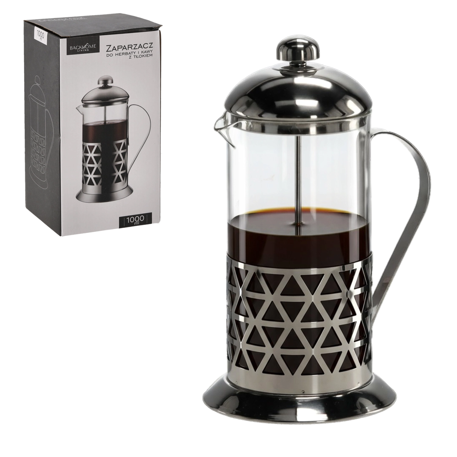Élégant french press à levier de 1000 ml pour une préparation facile de votre café et thé préférés. L’association du verre borosilicaté et de l’inox garantit une longue durabilité, une résistance aux hautes températures et une extraction pure et aromatique grâce au piston doté d’un filtre fin. Poignée ergonomique et bec verseur précis pour un service sûr sans éclaboussures.