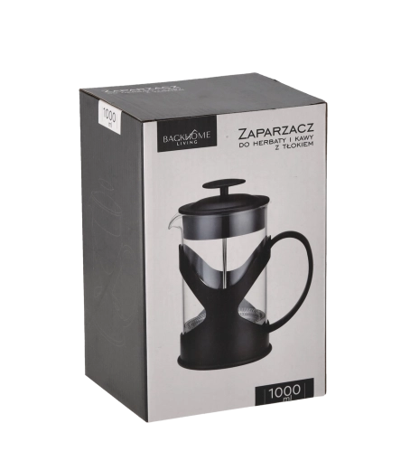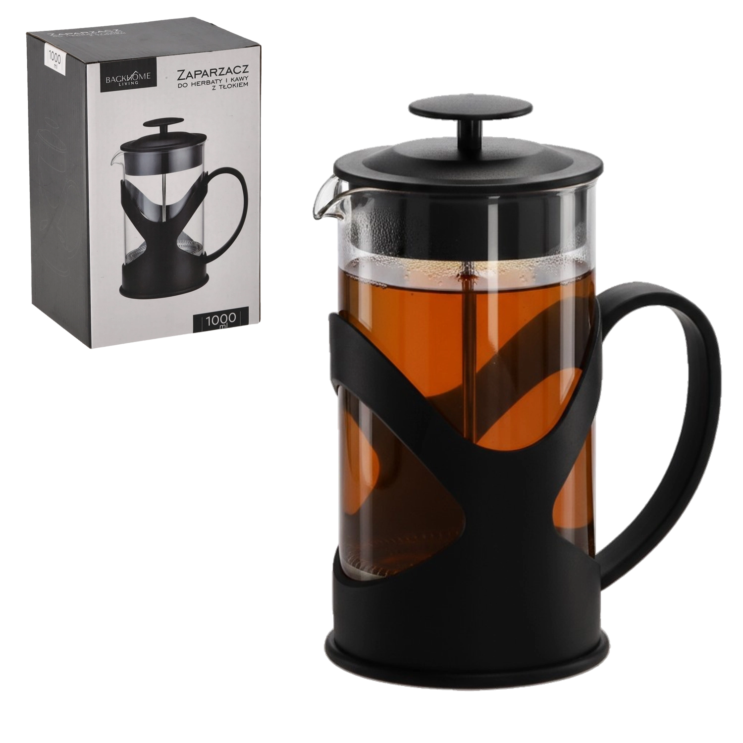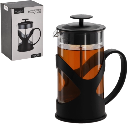 Élégante cafetière à piston de 1000 ml, un assistant pratique pour préparer un délicieux café, thé et infusions aux herbes. Grâce au mécanisme à piston et à la fine passoire en acier inoxydable, vous préparez votre boisson rapidement, proprement et sans marc. Le verre borosilicate résiste aux hautes températures, la poignée ergonomique et la base stable assurent une utilisation sûre et confortable. Idéale pour les rituels du quotidien comme pour les invités.