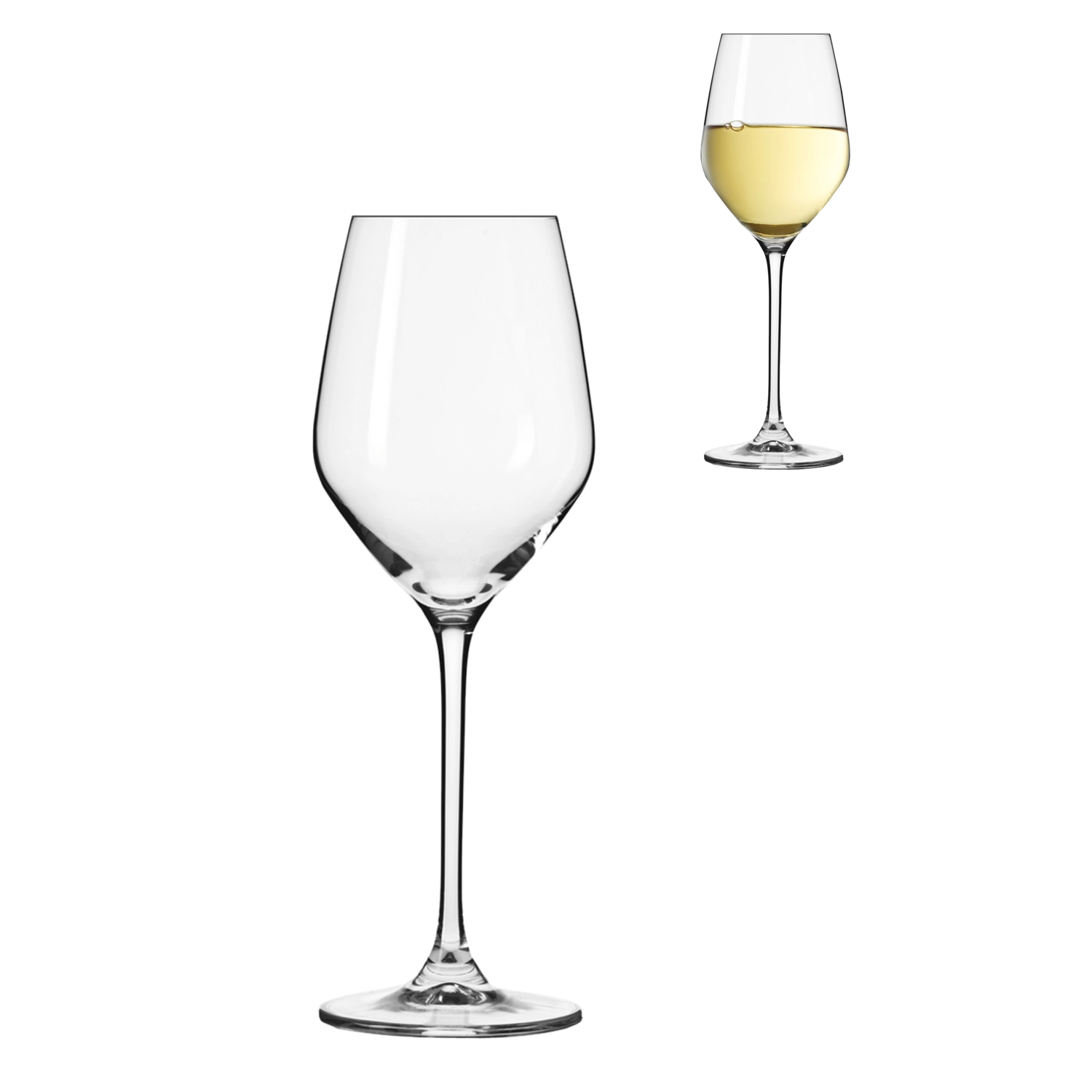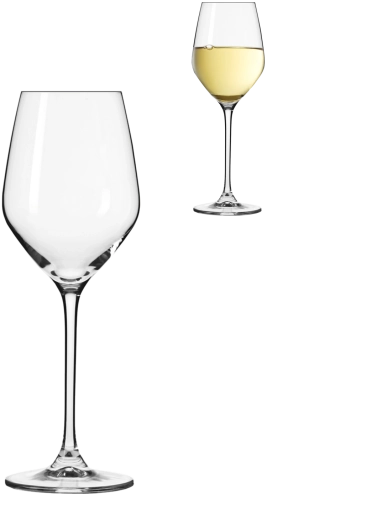 Un calice plus large qui se resserre vers le bord concentre les arômes et améliore la perception gustative du vin blanc lors de la dégustation.