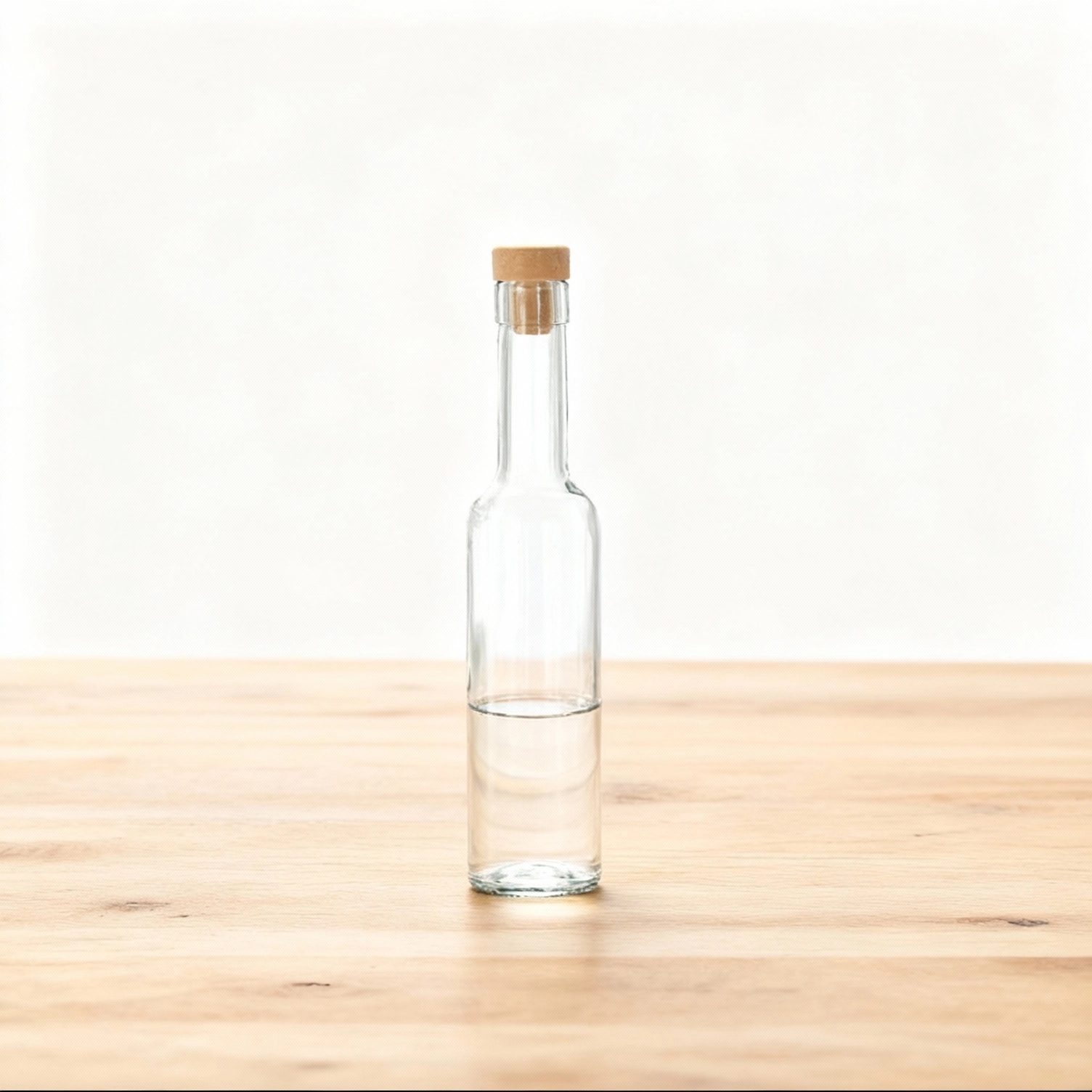 La bouteille Belissimo allie design minimaliste et détails pratiques. Le verre transparent offre une parfaite visibilité du contenu et de la quantité restante, le goulot étroit facilite le versement et le bouchon synthétique garantit une fermeture propre, répétable, sans transfert d’odeurs.