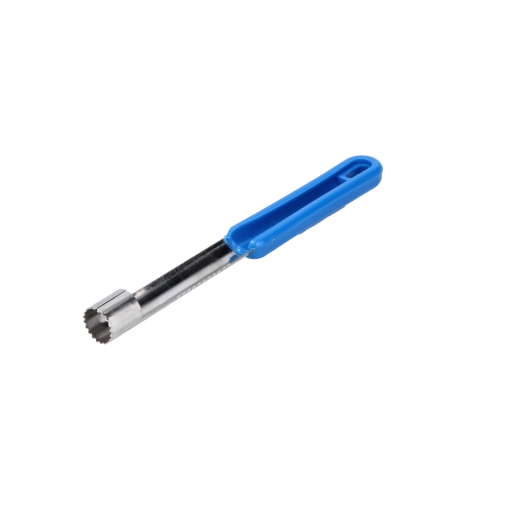 L’acier inoxydable de qualité avec dentelure pénètre facilement la chair et retire le trognon sans bords déchirés.