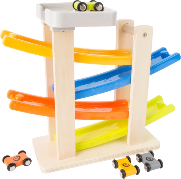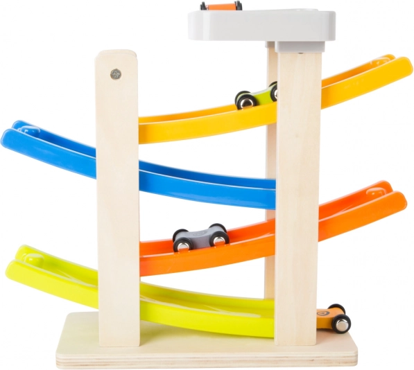 Les rampes multicolores rendent le jeu visuellement attrayant et favorisent l'apprentissage des couleurs.