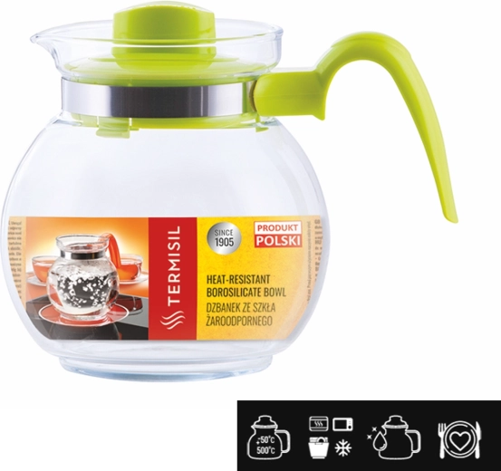 La carafe résistante à la chaleur TERMISIL Maja 1,5 l est une aide pratique pour servir quotidiennement thé, café, limonades et sirops maison. Le verre borosilicate à paroi fine est léger, résistant et sûr lors du remplissage avec de l’eau bouillante. Grâce à l’inertie chimique du matériau, les boissons conservent leur goût et leur arôme purs.