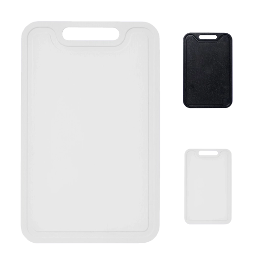Pratique, la planche à découper de 38 × 24 cm est idéale pour la cuisine au quotidien. Elle offre une surface lisse et résistante qui préserve le tranchant des couteaux, se nettoie facilement et est compatible lave-vaisselle. Grâce à sa conception légère et à sa poignée pratique, elle se manipule aisément et peut être simplement suspendue. Fabriquée en polypropylène sans BPA et disponible en couleurs modernes – blanc, noir, gris.
