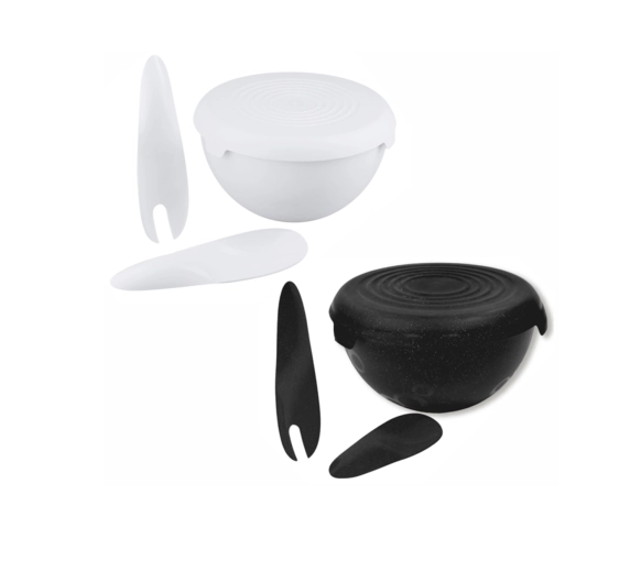Bol pratique avec couvercle d’une capacité de 3 litres, idéal pour préparer et servir des salades, des pâtes et d’autres plats. Livré avec deux cuillères de service pour un mélange et un service faciles. Grâce à son design moderne en blanc, noir ou gris, il s’intègre parfaitement dans toute cuisine. Fabriqué en plastique durable sans BPA, il est léger, solide et adapté au réfrigérateur, au congélateur et au lave-vaisselle.