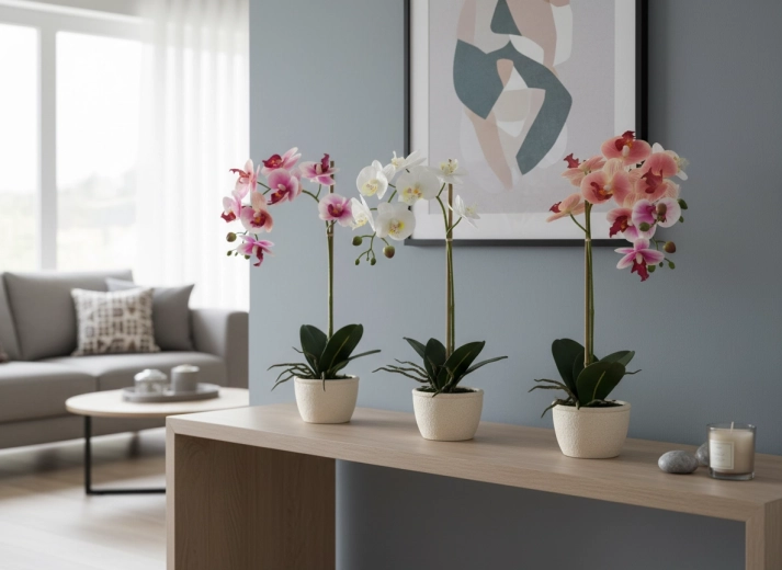 Plus besoin d’arroser ni de gérer l’exposition à la lumière. L’orchidée reste toujours belle – idéale pour les espaces peu ensoleillés comme pour les lieux très fréquentés.