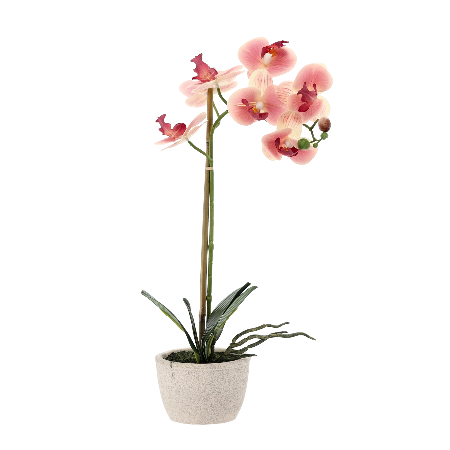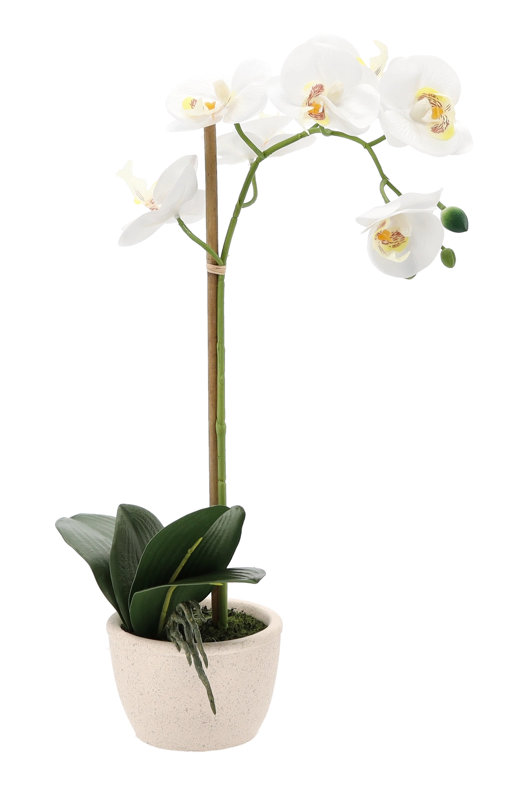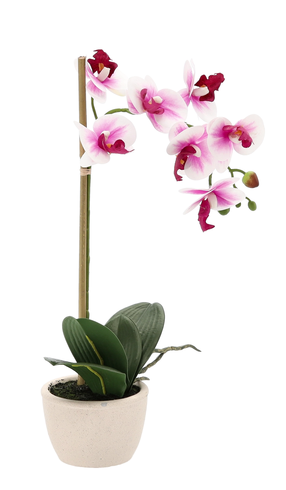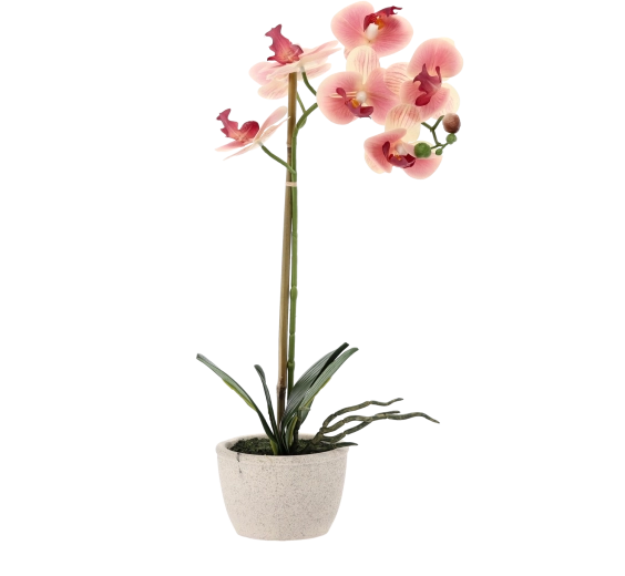 Pétales délicats, boutons décoratifs et feuillage dense imitent fidèlement une orchidée vivante et apportent une touche de luxe à votre intérieur sans effort.