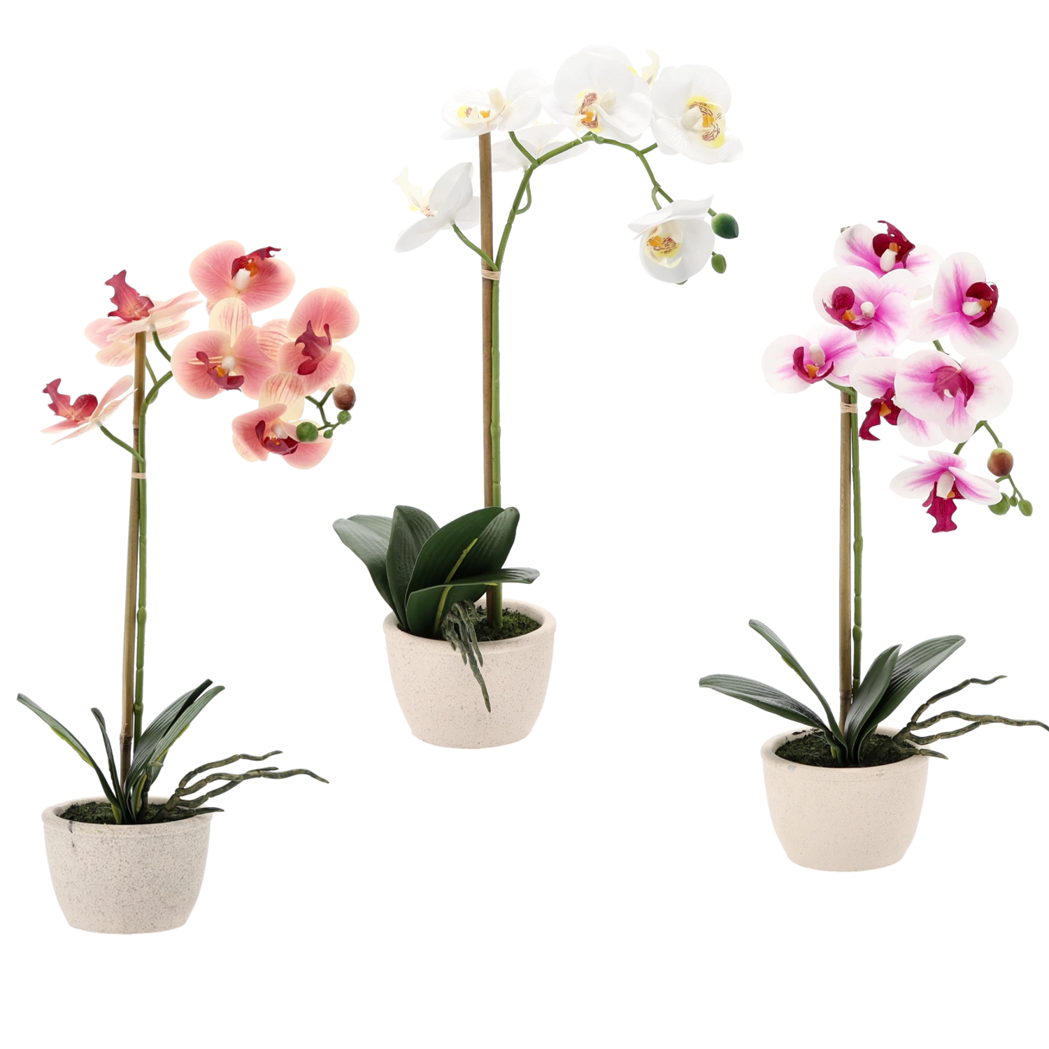 Une décoration pratique qui ne nécessite ni arrosage ni conditions lumineuses particulières. Le pot stable et neutre s’harmonise aisément avec un style d’intérieur moderne ou classique, et l’assortiment de trois couleurs parfait votre mise en scène.