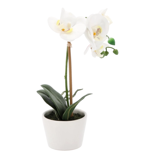 L’orchidée artificielle en pot apporte l’élégance des fleurs véritables sans les contraintes d’entretien. Des fleurs, des boutons et des feuilles réalistes offrent un rendu naturel et ajoutent une touche de couleur et d’harmonie à toute pièce. Grâce à sa taille compacte de 30 cm, elle convient à une table, une étagère ou un rebord de fenêtre.