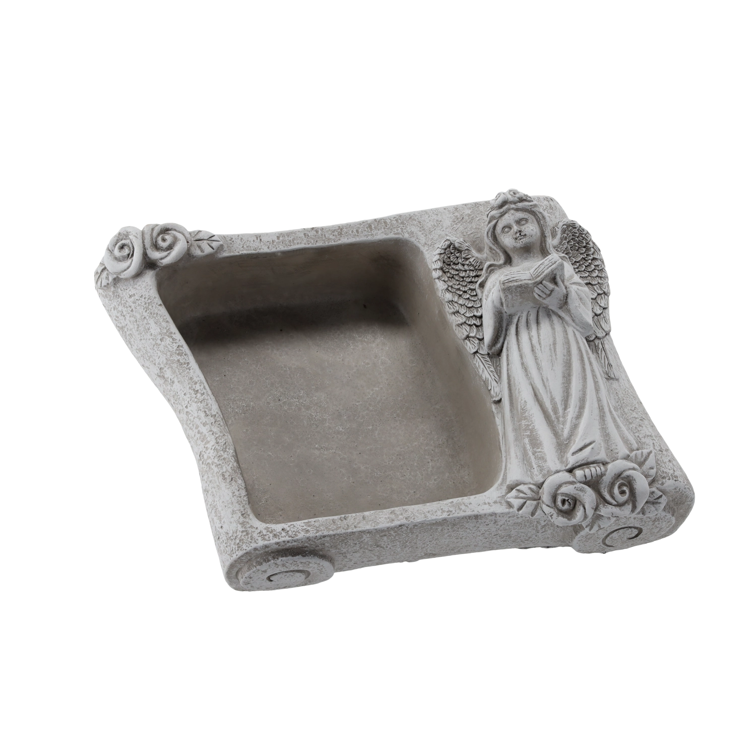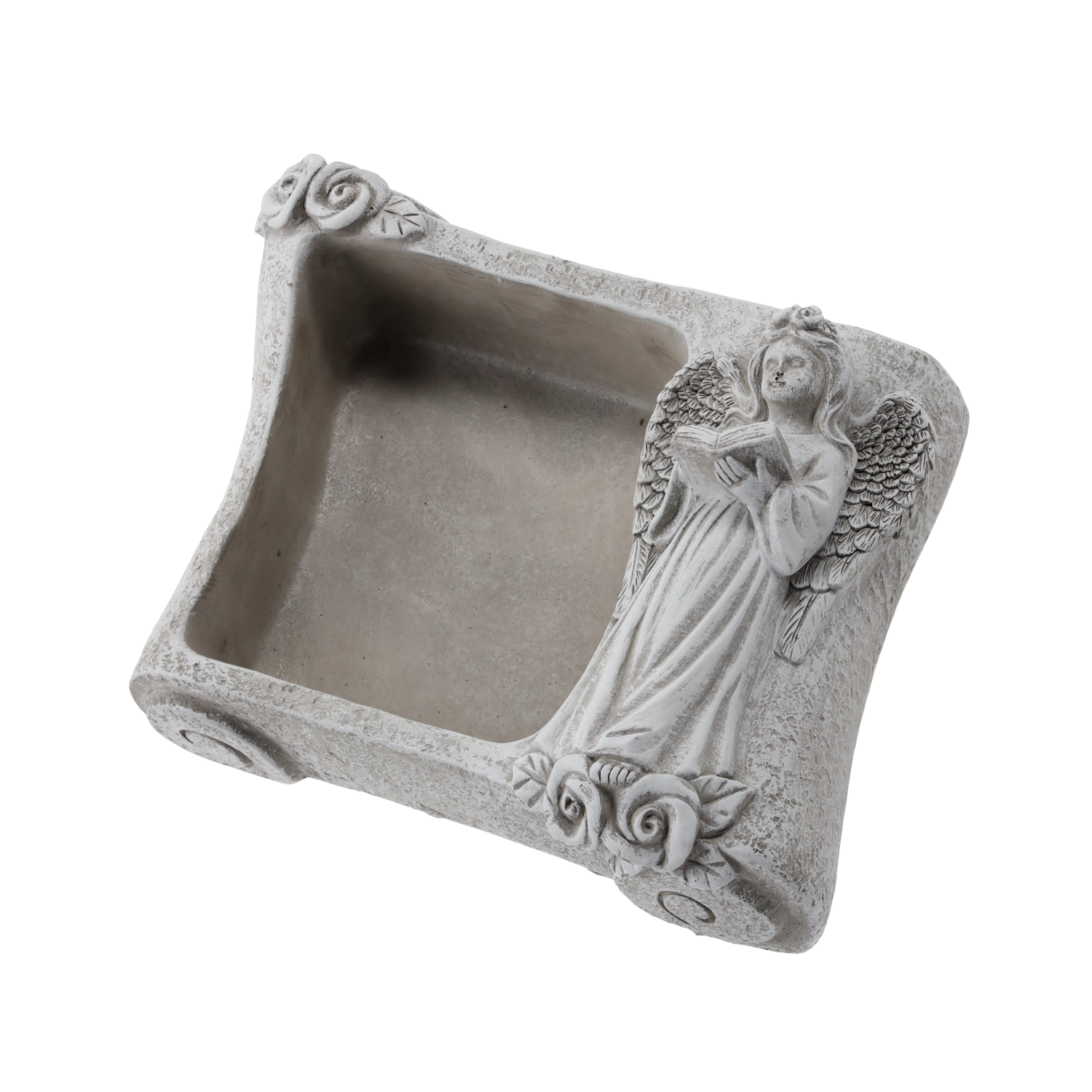 Coupe décorative en ciment avec ange – livre gris 25 × 18,5 × 9,5 cm