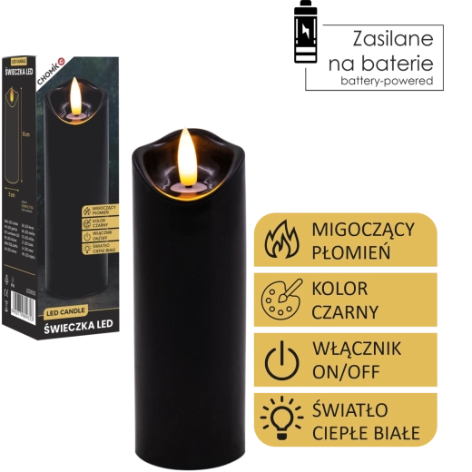Une solution sûre et pratique pour les foyers avec enfants et animaux de compagnie – aucune flamme nue ni cire chaude. Grâce à l’alimentation par piles, vous pouvez placer la bougie où vous voulez créer une lumière cosy.