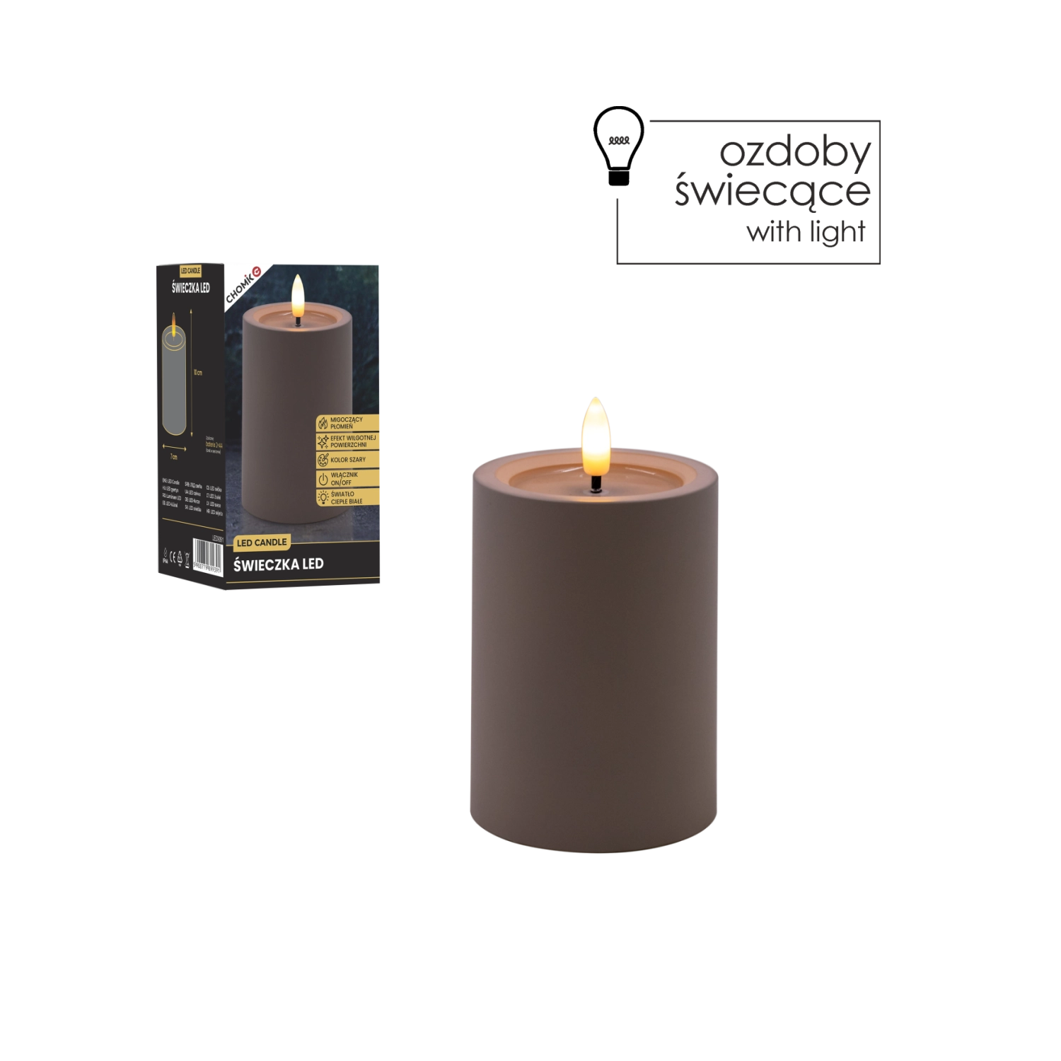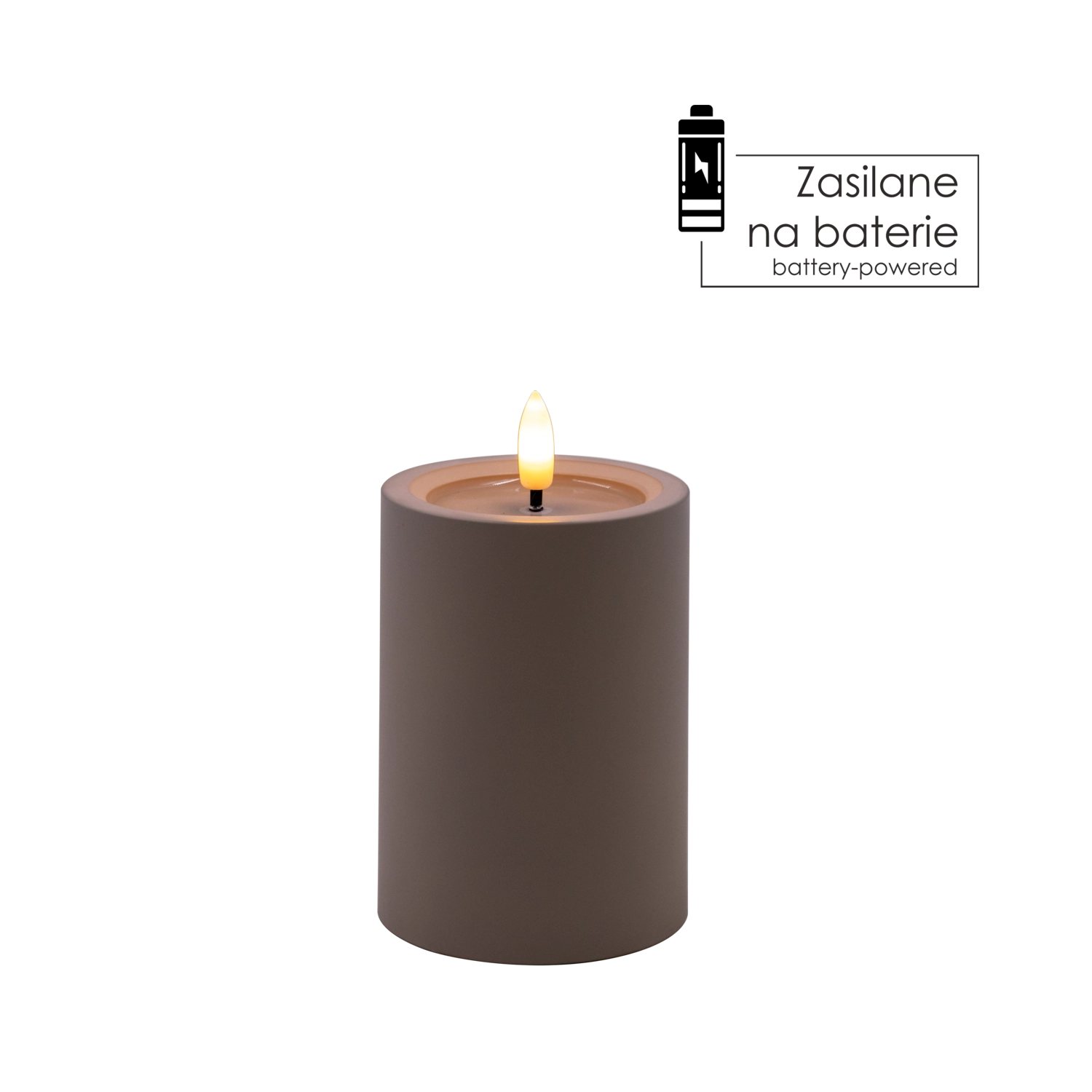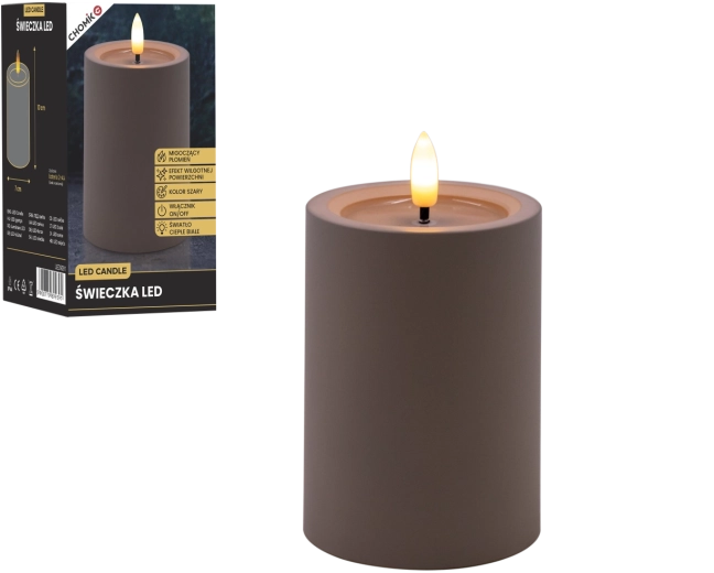 Bougie LED grise 7 × 10 cm avec flamme chaude scintillante