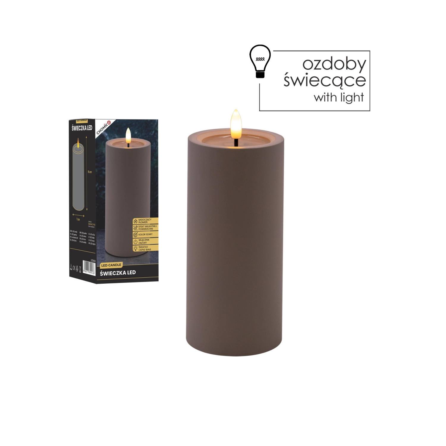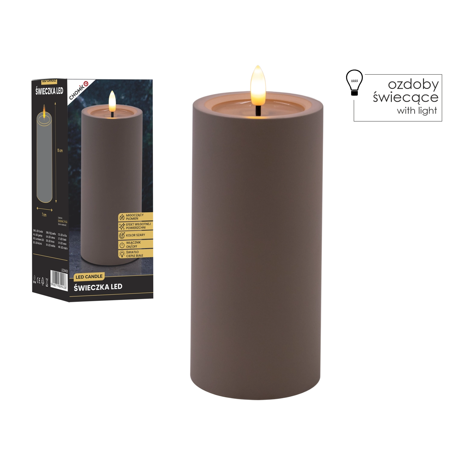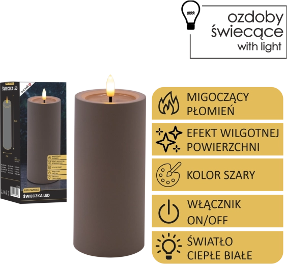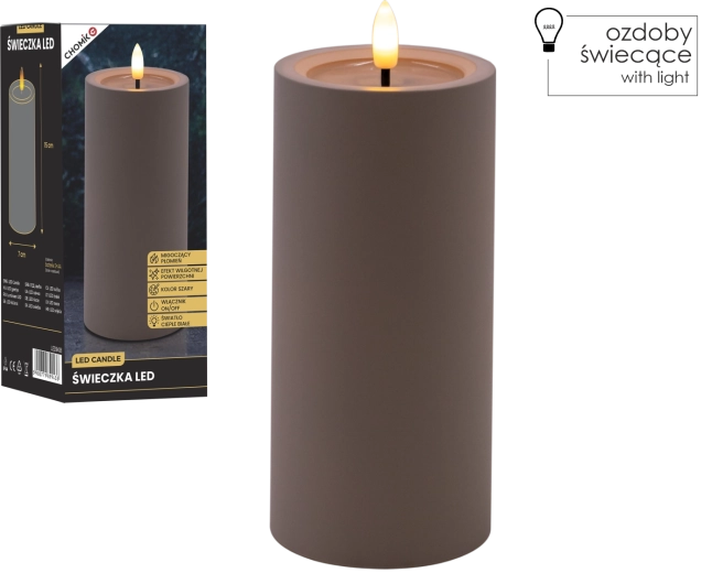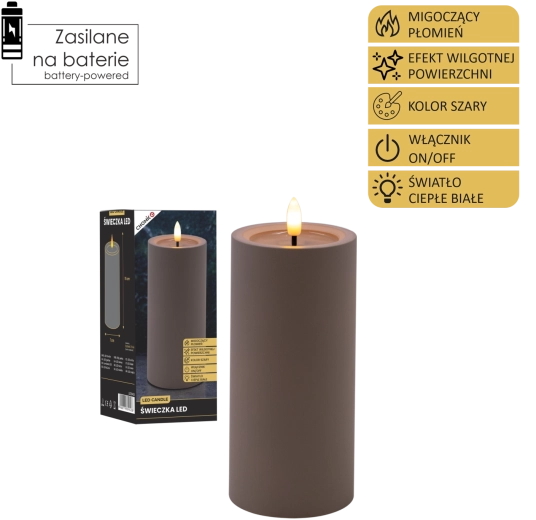 Cette bougie LED grise apporte un éclairage sûr et élégant à toute pièce. Grâce à sa lumière blanc chaud et à son effet de flamme vacillante, elle imite fidèlement une véritable bougie, tandis que l’effet de surface supérieure humide renforce son aspect authentique.