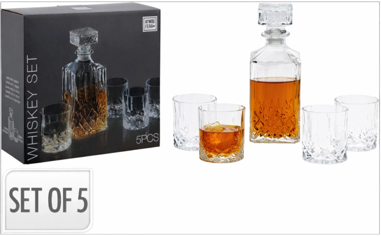 Le set est polyvalent – il convient non seulement au service du whisky, mais aussi de l’eau, des jus et d’autres boissons. Un avantage pratique est sa facilité d’entretien : carafe et verres passent au lave-vaisselle. Une excellente idée de cadeau élégant pour tout amateur de bel art de la table.