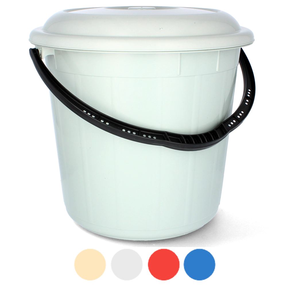 Seau en plastique pratique de 20 litres avec couvercle solide pour une fermeture sûre du contenu. Idéal pour la maison, le jardin et le chantier – plastique résistant, poignée ergonomique et utilisation polyvalente pour un travail confortable et une longue durée de vie.