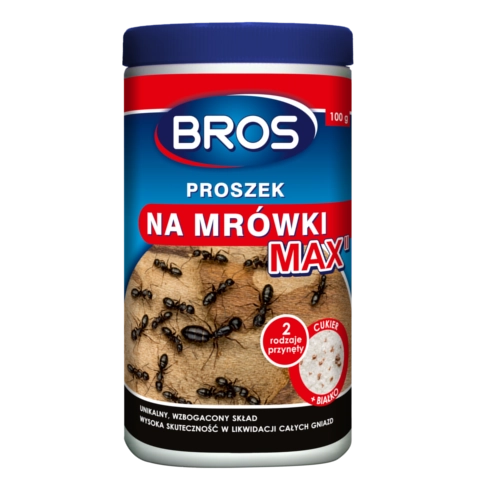 BROS poudre pour fourmis MAX 100 g est une solution professionnelle pour lutter contre les fourmis dans les habitations et leurs abords immédiats. Le double type d’appât (sucré et protéiné) augmente l’attractivité du produit pour différentes phases et besoins de la population de fourmis, favorisant sa consommation et son transfert au nid. Ainsi, non seulement les insectes visibles sont éliminés, mais aussi toute la colonie, nid compris.