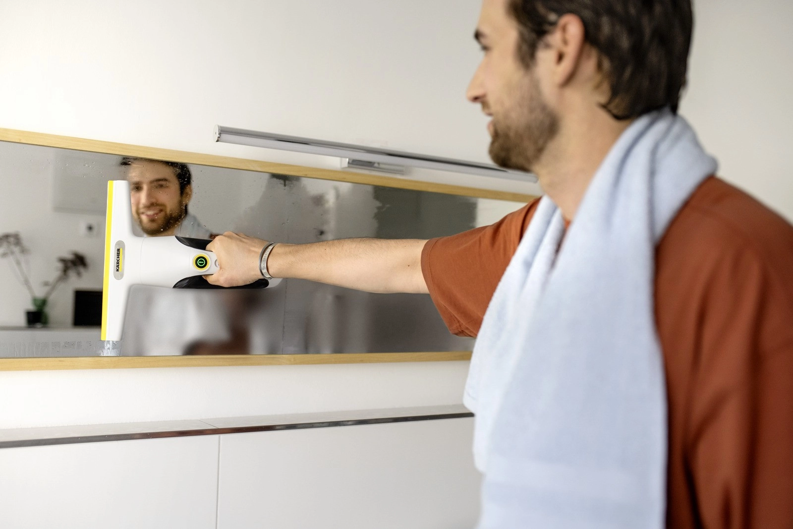 L’aspiration électrique empêche les gouttes et les coulures. Nettoyez rapidement et sans traces les vitres, miroirs et autres surfaces lisses.