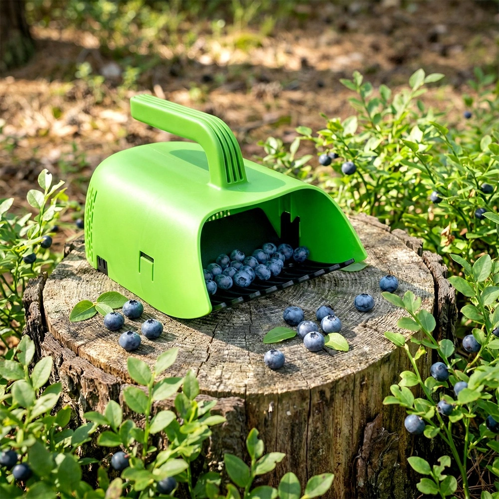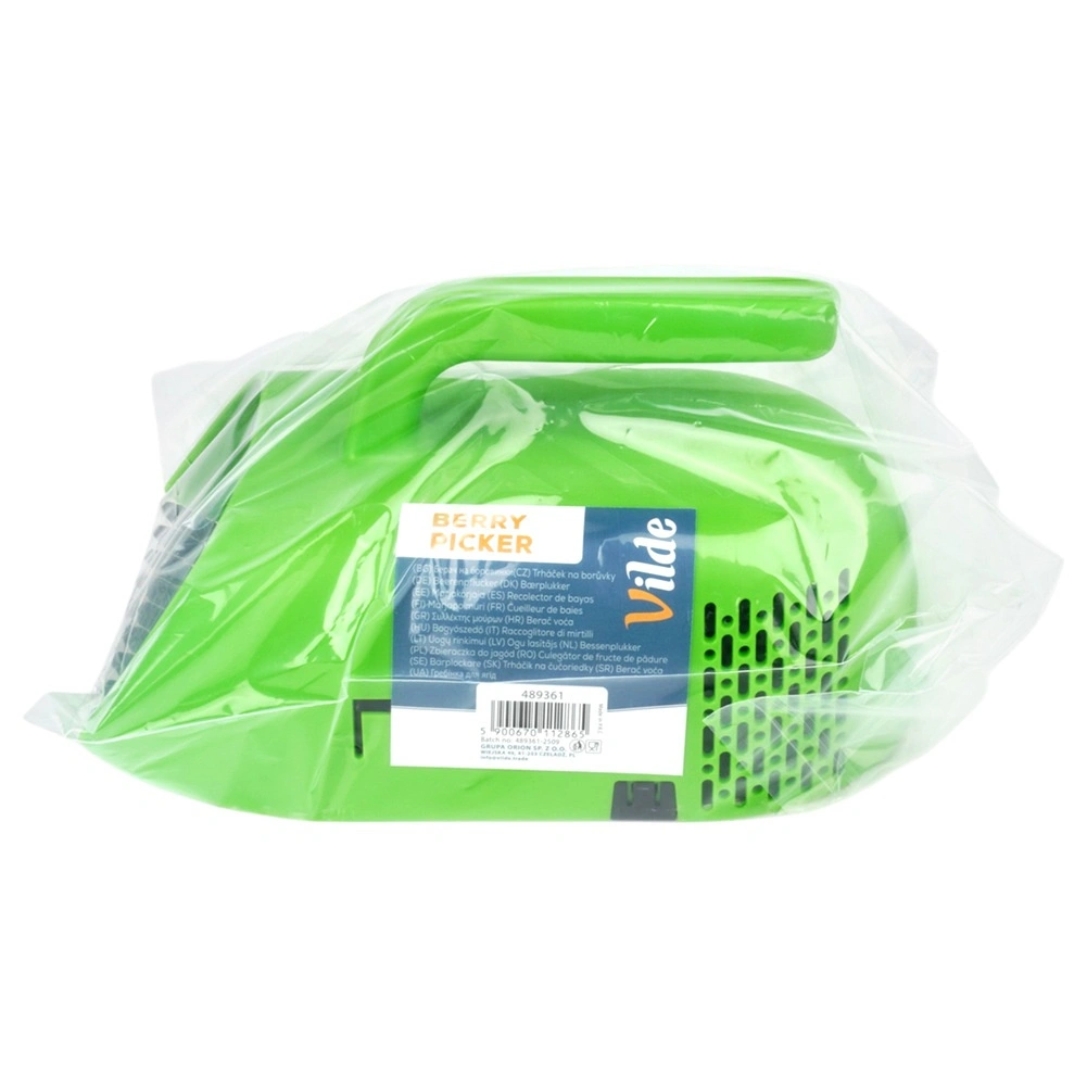 Cueilleur de baies pratique pour une récolte rapide et confortable. Grâce à la poignée ergonomique et au peigne spécial, les fruits se détachent facilement des tiges tandis que les baies restent en toute sécurité à l’intérieur du réservoir. Structure en plastique légère et résistante de couleur verte avec peigne noir, facile à manier et à nettoyer, idéale pour myrtilles, groseilles, aronie et baies sauvages.