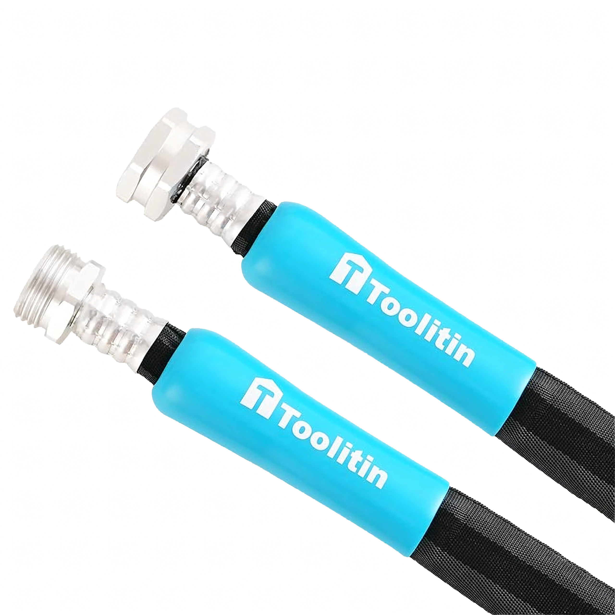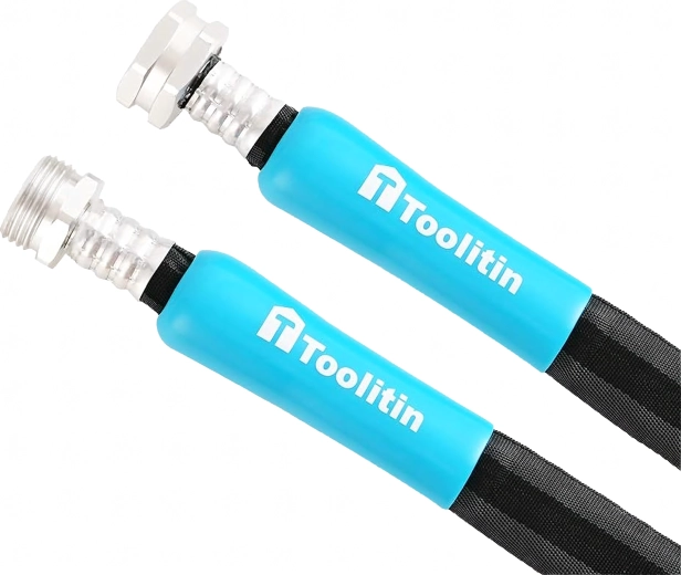 Connexion fiable aux robinets, arroseurs et pompes grâce aux embouts filetés métalliques avec manchons de protection anti-pliure.