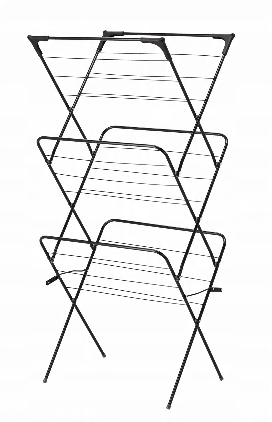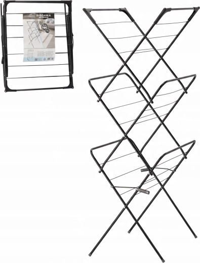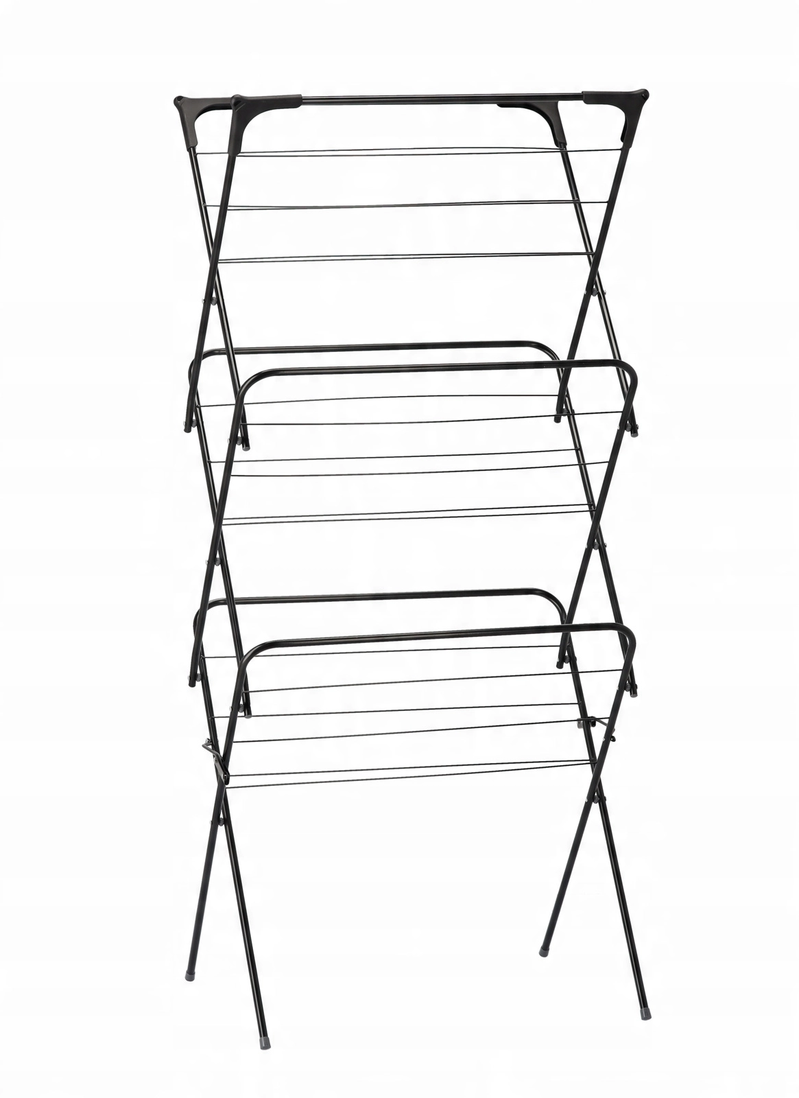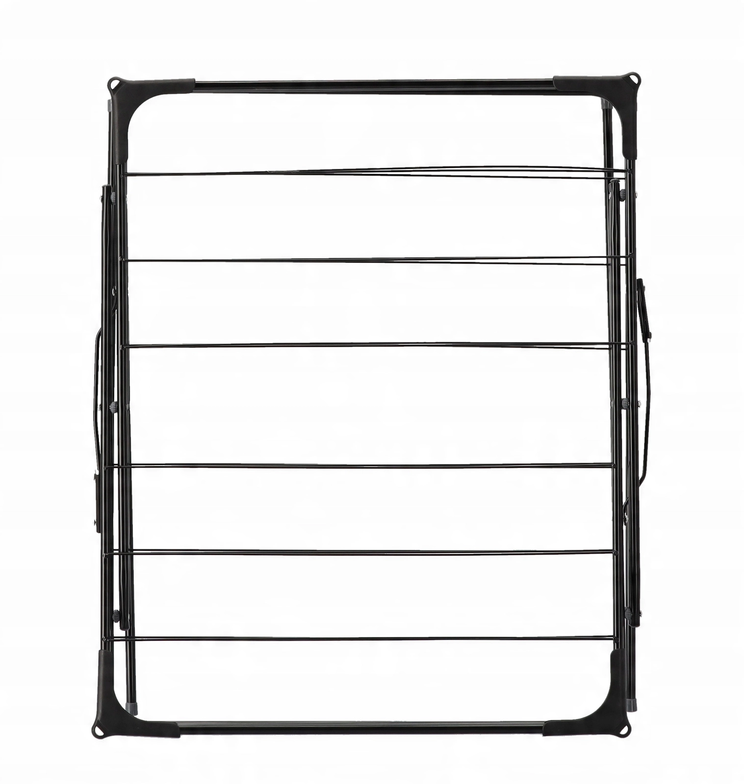 Le cadre métallique solide de couleur noire résiste à un usage quotidien et aux intempéries, garantissant la stabilité lors du séchage à la maison comme sur le balcon.