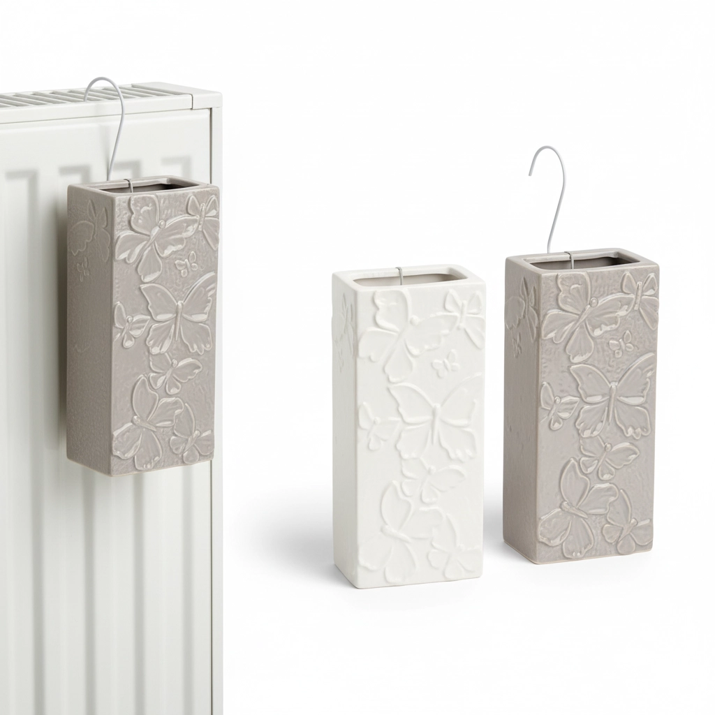 Créez un climat intérieur agréable avec ces humidificateurs en céramique pour radiateur au délicat relief de papillons. Il suffit de les remplir d’eau et de les accrocher au radiateur – la chaleur assure une évaporation progressive et une humidification naturelle de l’air sans consommation d’électricité, sans filtres ni bruit. Le lot de 6 pièces couvre plusieurs pièces de l’appartement ou de la maison.