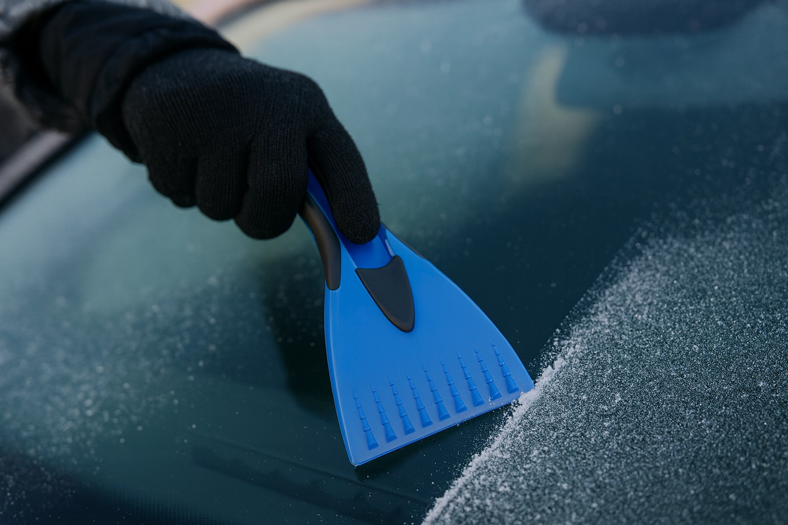 Les dents crantées brisent rapidement les couches épaisses de glace, tandis que le large bord lisse finit le nettoyage en un instant, sans traces.