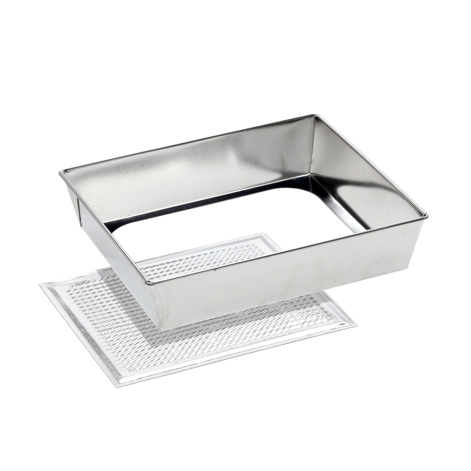 Moule rectangulaire pratique avec fond amovible pour un démoulage facile des gâteaux et tartes. Grâce au fond texturé, la pâte adhère moins, ce qui facilite la cuisson et le nettoyage. Sa structure robuste en tôle galvanisée convient aux fours à gaz et électriques et résiste jusqu’à 220 °C.