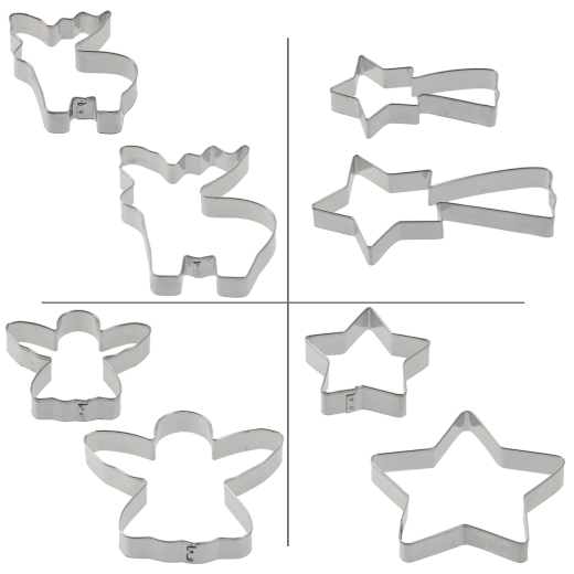 Avec ce set de deux emporte-pièces en forme d’ange, préparez de jolis biscuits et pains d’épices qui sublimeront toute table de fête. Grâce à la combinaison grand et petit format, réalisez facilement des assortiments coordonnés à l’allure professionnelle.