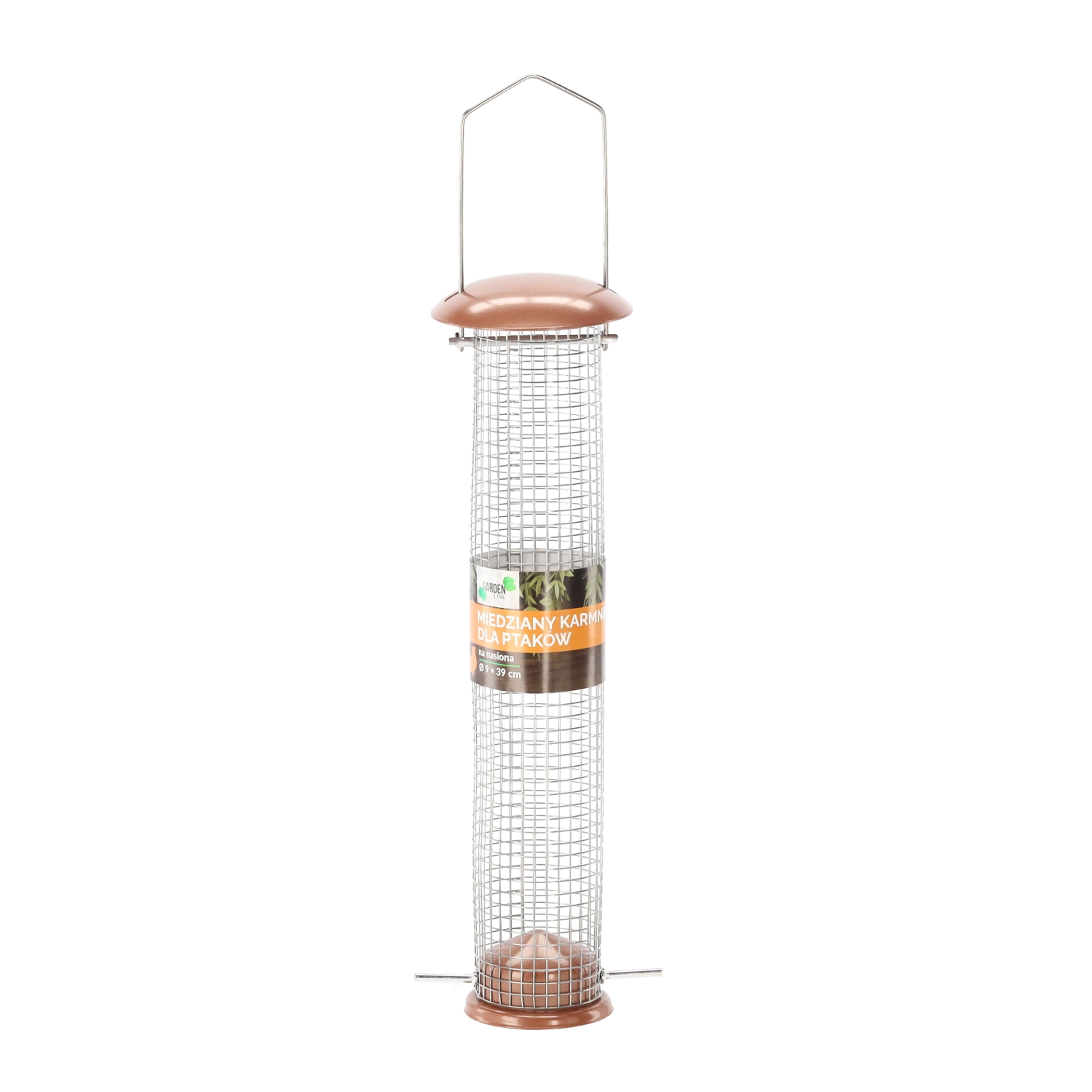 Mangeoire pour oiseaux stylée et résistante en forme de tube, en métal et maille métallique, dans une élégante teinte cuivrée. Idéale à suspendre au jardin ou au balcon, avec remplissage régulier de graines. Grâce à sa suspension pratique, l’installation est simple et rapide, tandis que la structure métallique robuste et la finition cuivrée raffinée assurent une longue durée de vie et un aspect attrayant.