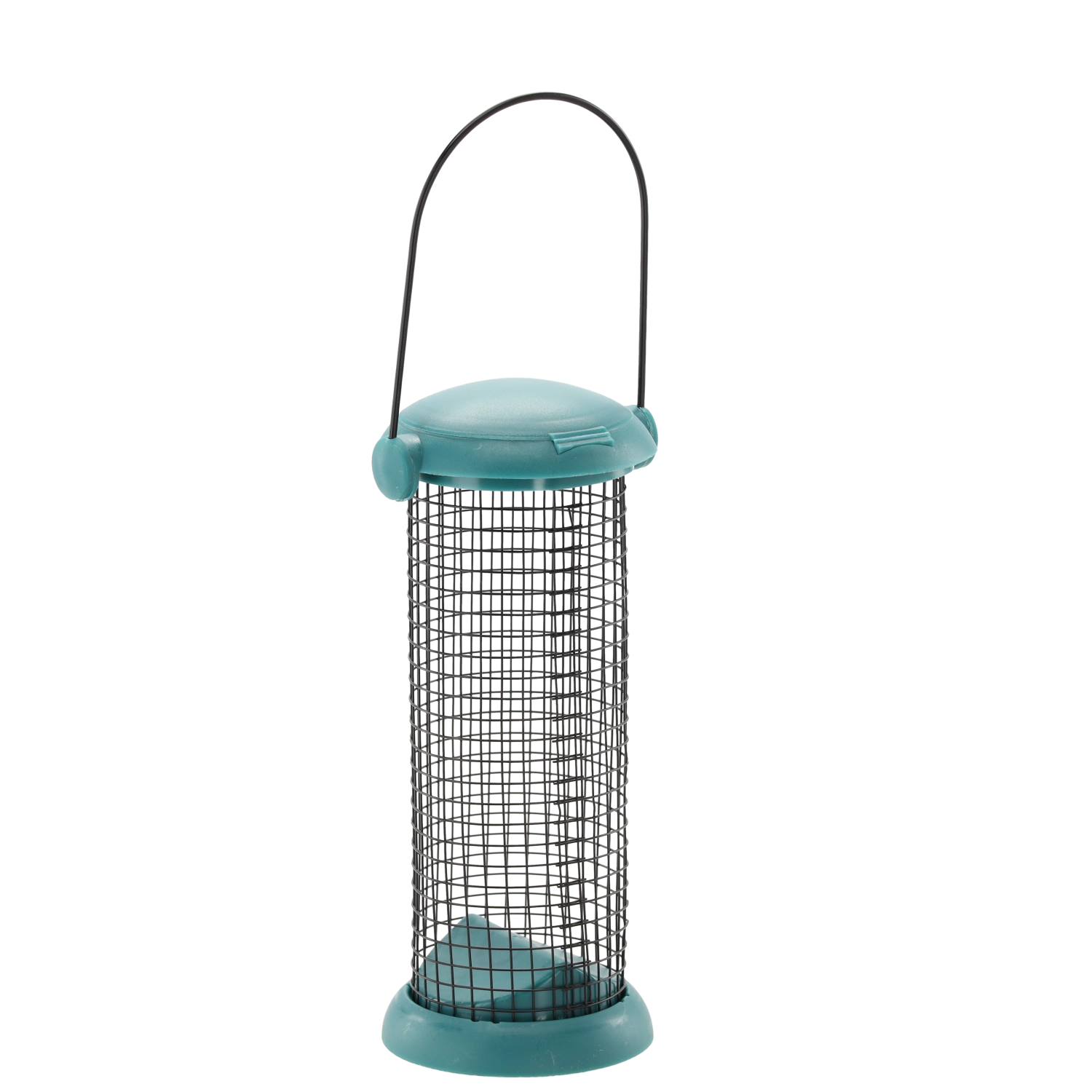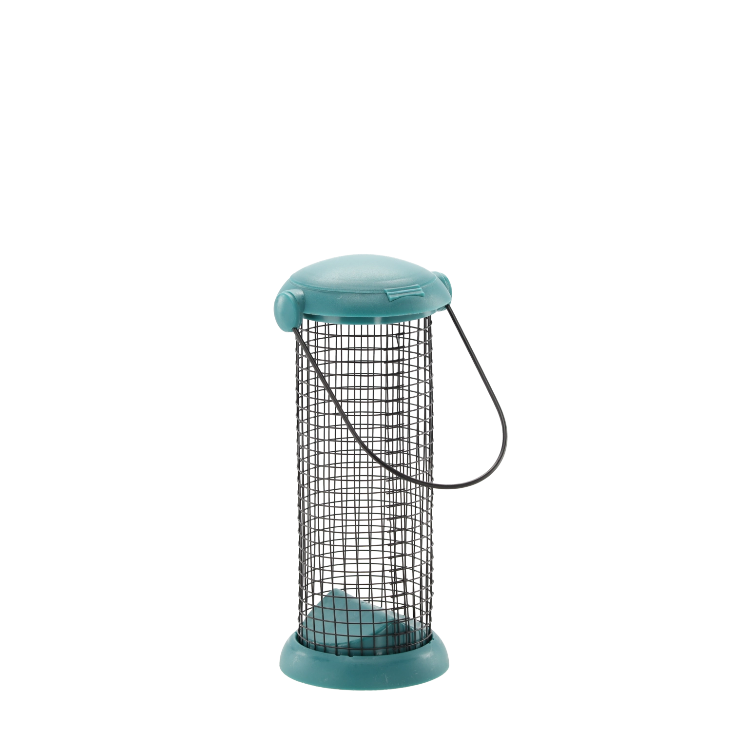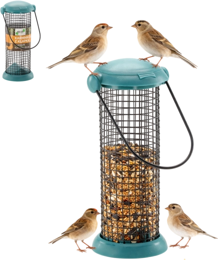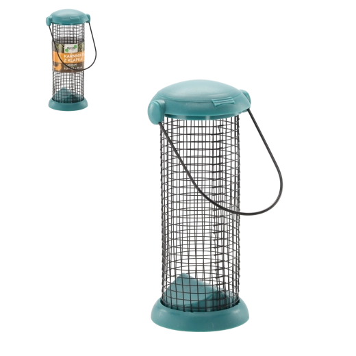 Cette mangeoire robuste est fabriquée en métal et en plastique de qualité, ce qui la rend très résistante aux intempéries et idéale pour le nourrissage des oiseaux toute l’année. Le corps cylindrique en treillis métallique assure un excellent drainage et une bonne aération, évitant que la nourriture ne s’altère ou n’absorbe l’humidité.