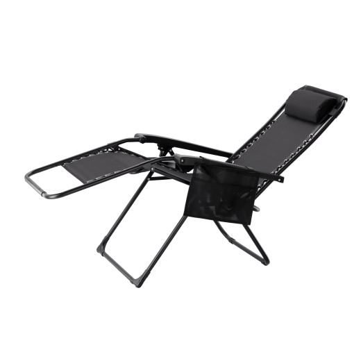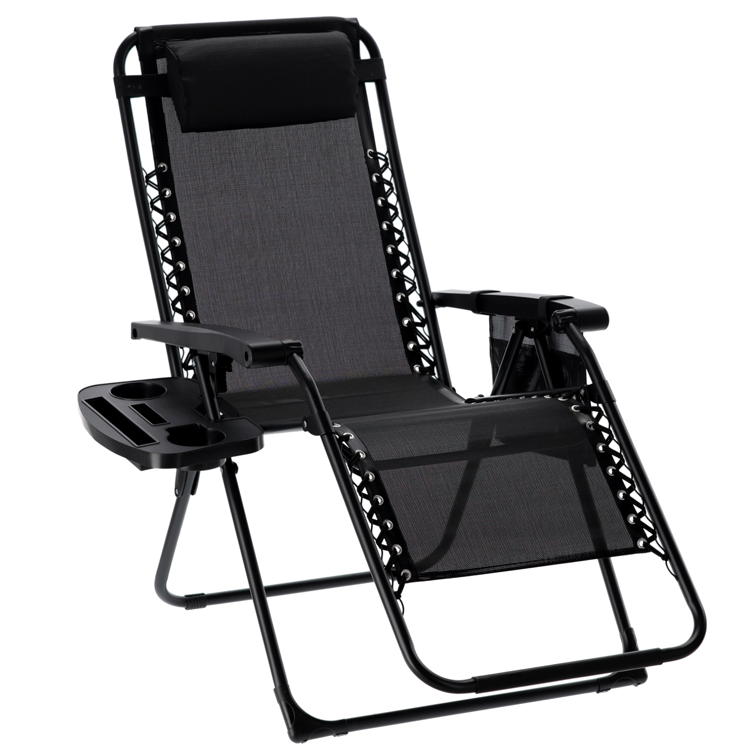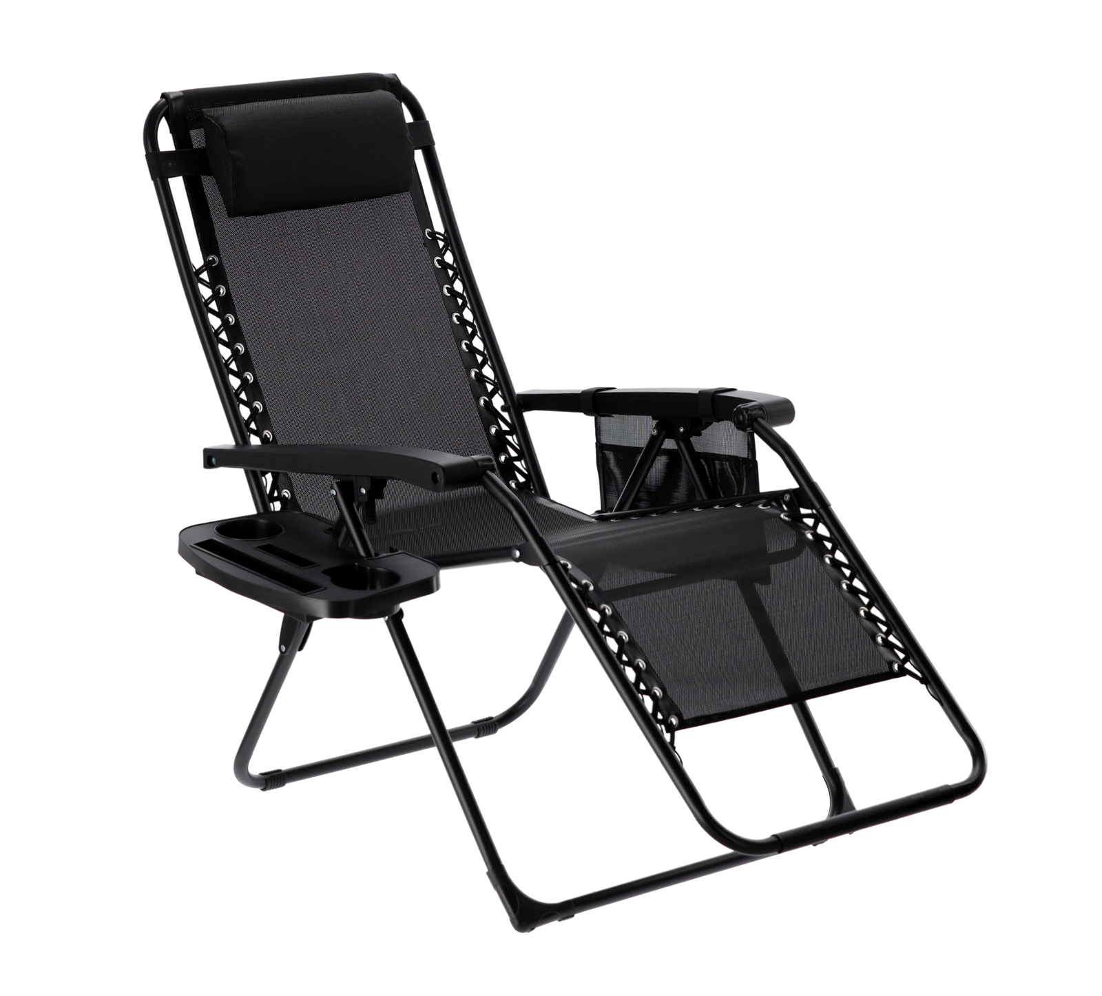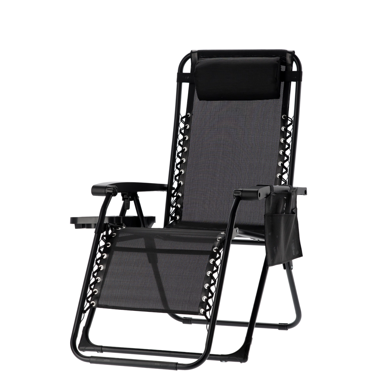 Chaise longue de jardin réglable Zero Gravity, pliante, avec plateau porte-boisson et poche, noire 65 × 176 × 110 cm