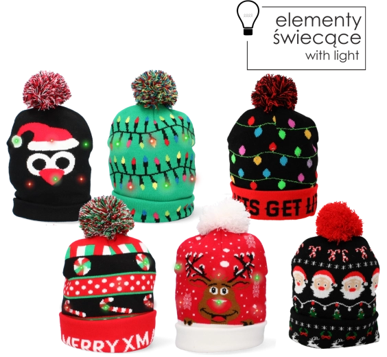Vous cherchez un accessoire original pour une soirée d’entreprise, une séance photo en famille ou un marché de Noël ? Le mélange de motifs de ce lot fera plaisir à tous – des bonnets avec inscriptions comme MERRY XMAS, aux motifs de rennes, de Père Noël et de guirlandes lumineuses, jusqu’aux modèles avec éclairage LED pour un véritable effet « wow ». Tous les bonnets sont en maille douce, chauds et agréables à porter.