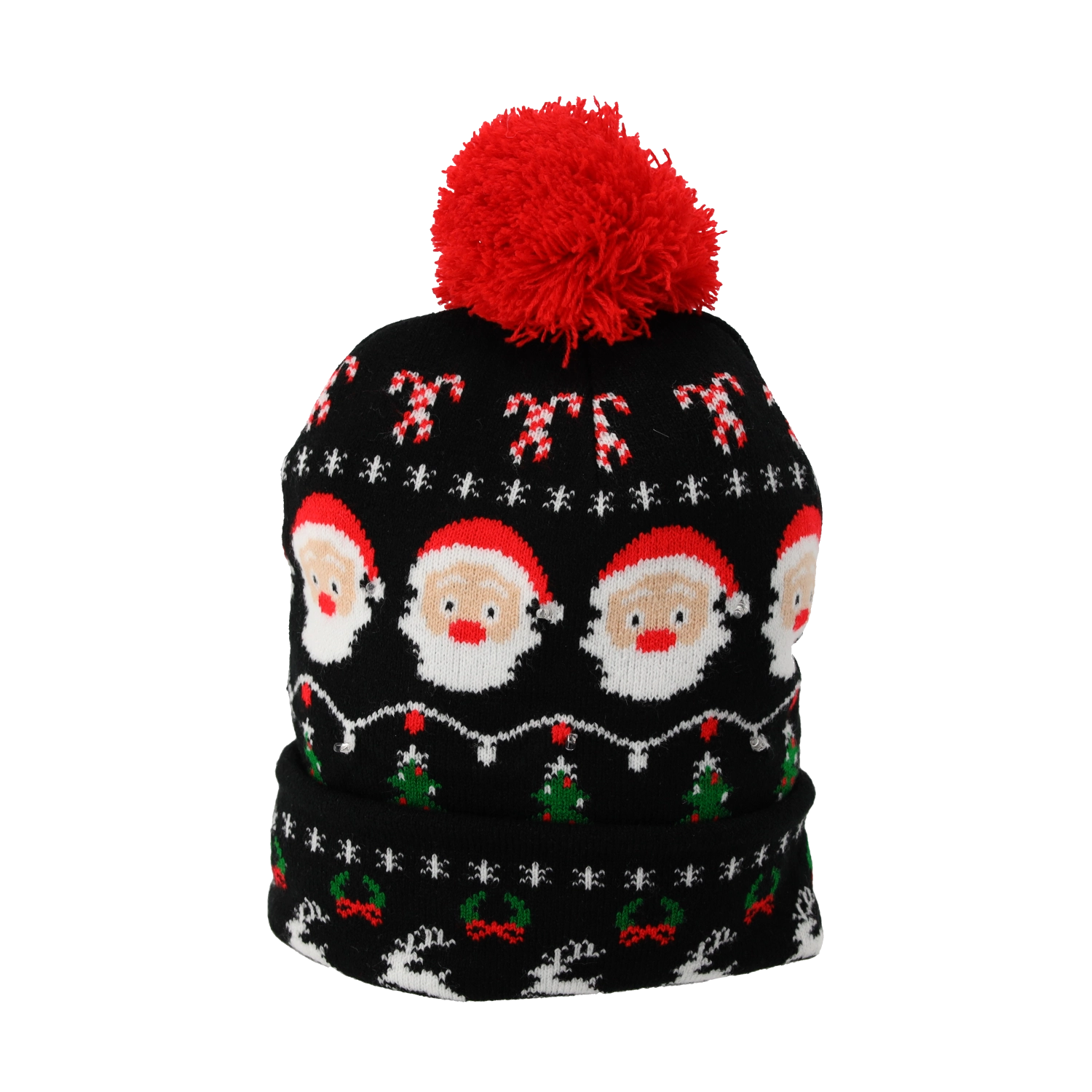 Des rennes et du Père Noël aux guirlandes lumineuses et aux inscriptions MERRY XMAS – le lot de huit bonnets offre des motifs variés pour différents styles et occasions.
