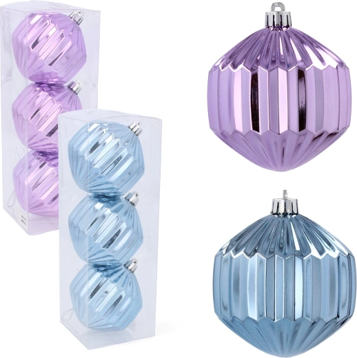 Set de boules de Noël en verre 8 cm – violet et bleu (3 pcs)