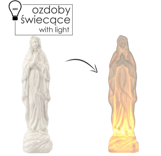 Élégante figurine en porcelaine de la Vierge Marie d’une hauteur de 28,8 cm avec éclairage LED intégré, créant une atmosphère chaleureuse et apaisante dans votre intérieur. Grâce à son alimentation par batterie, elle se place partout sans câbles, idéale pour les décorations de Noël comme pour un recueillement quotidien.