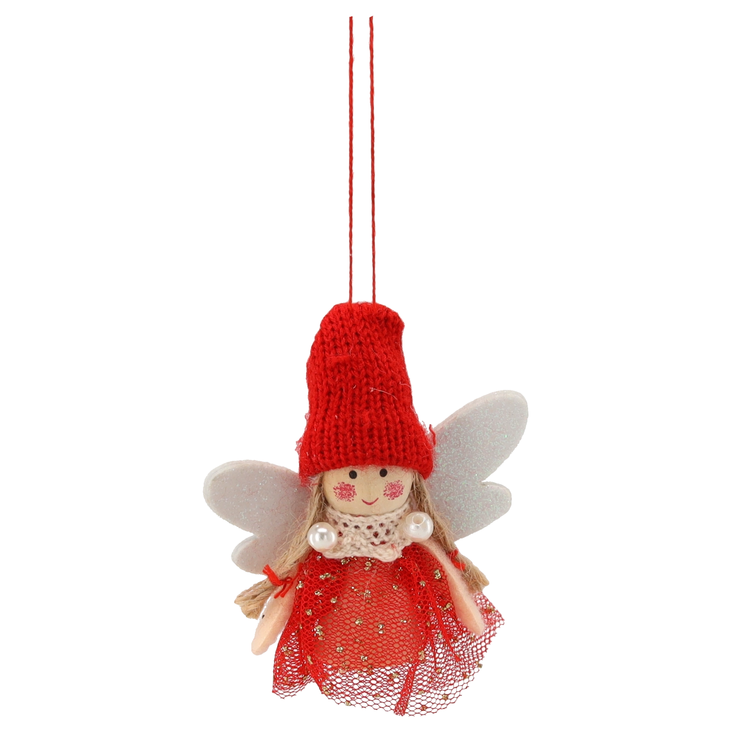 Ce set comprend quatre petits anges avec bonnets tricotés, ailes scintillantes et détails raffinés, pour apporter une touche féerique à votre décoration de Noël. Grâce à leurs couleurs universelles – rouge et blanc – ils s’accordent facilement aux décorations traditionnelles comme modernes.