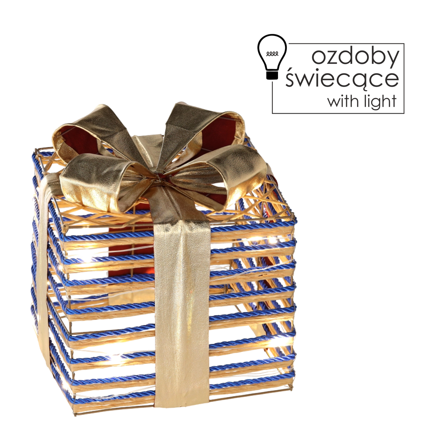 Offrez-vous la magie de Noël avec cette décoration design en forme de boîte cadeau, ornée d’un ruban bleu marqué et d’un éclairage LED intégré. Sa lumière chaude crée une ambiance festive et agréable, parfaite pour compléter votre décoration, à l’intérieur comme à l’extérieur.