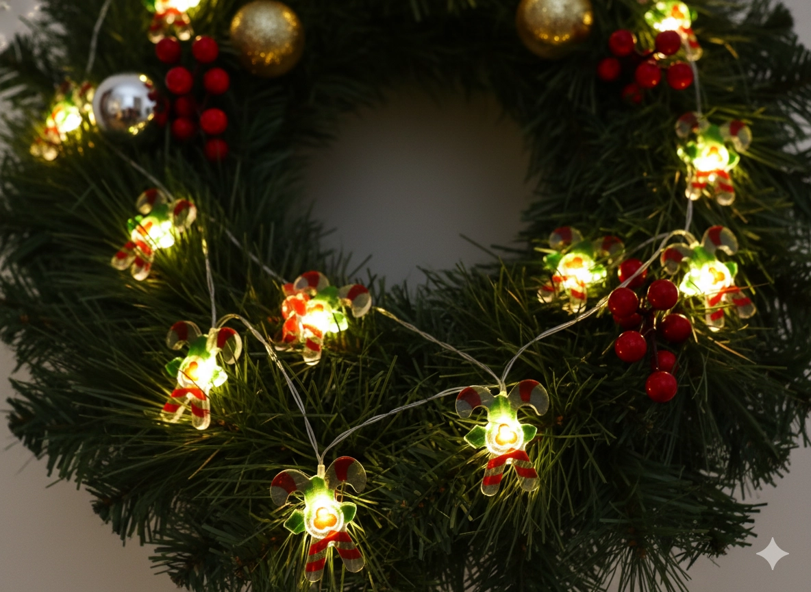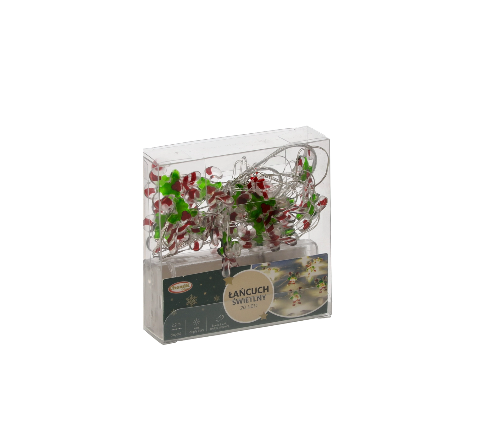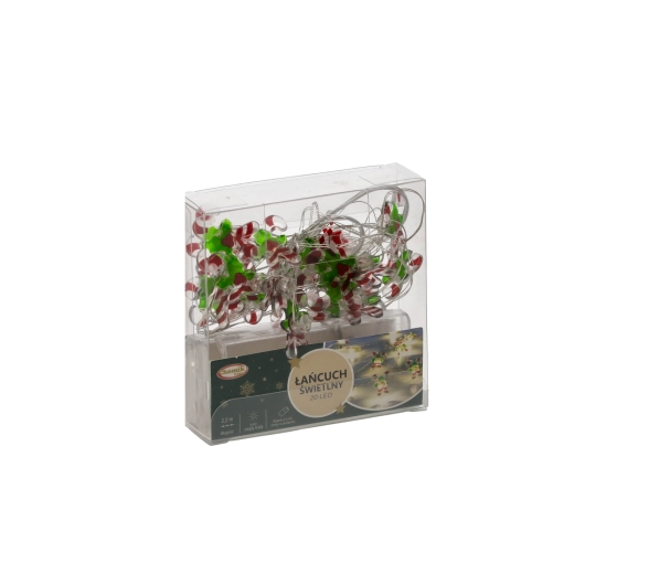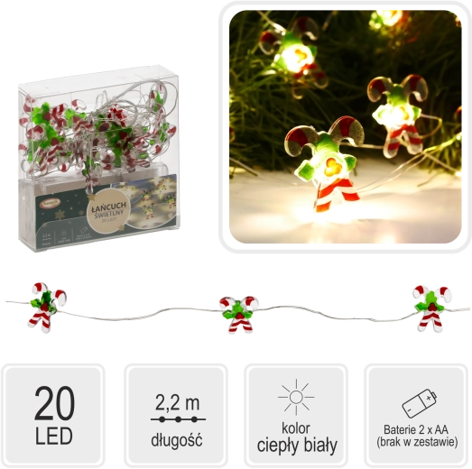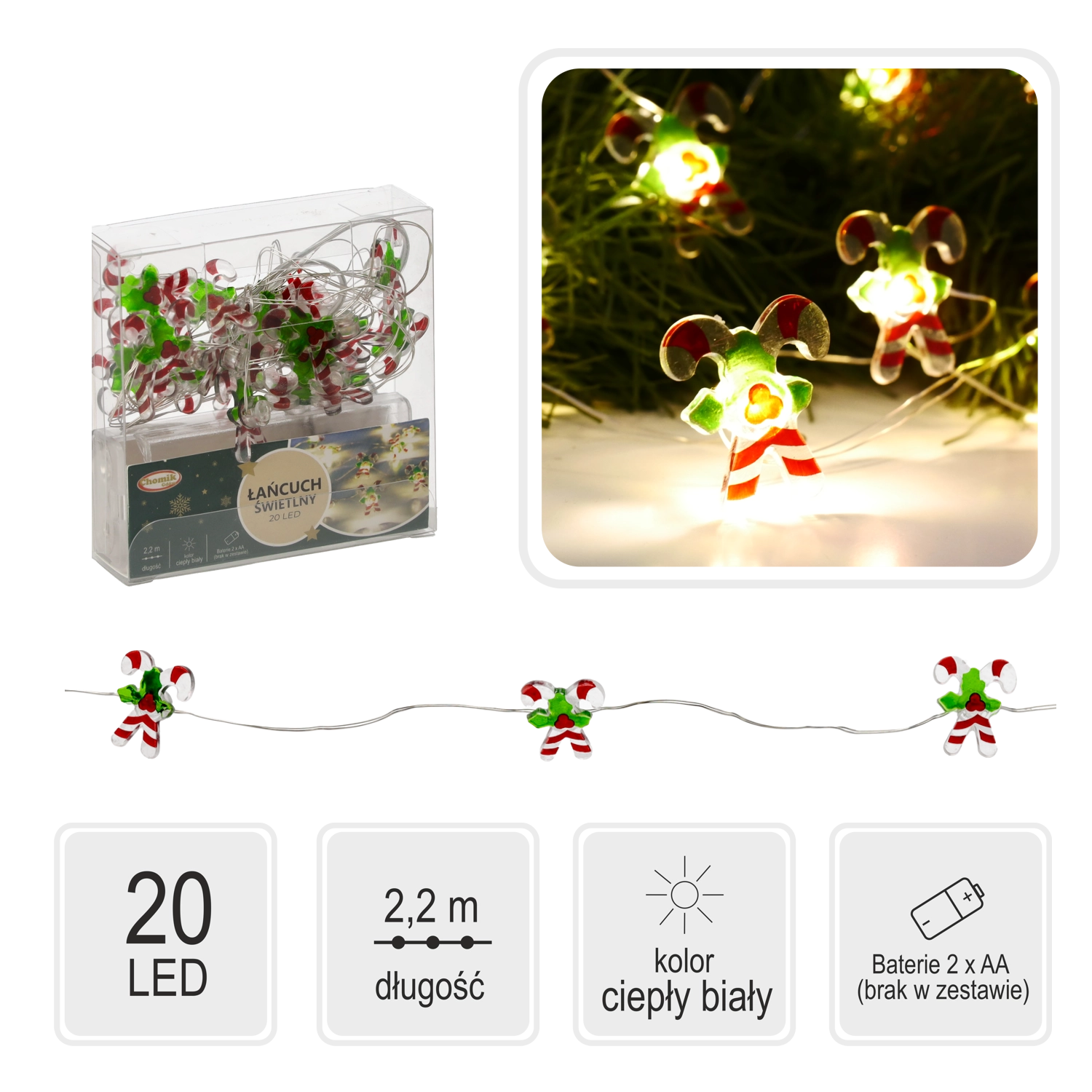 Vingt diodes LED au motif bonbons diffusent une lumière blanc chaud agréable qui crée une atmosphère apaisante et festive dans chaque pièce.