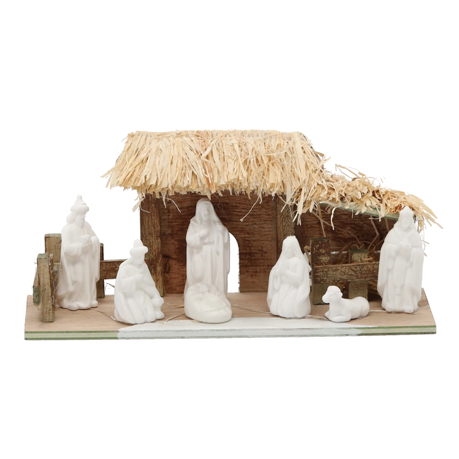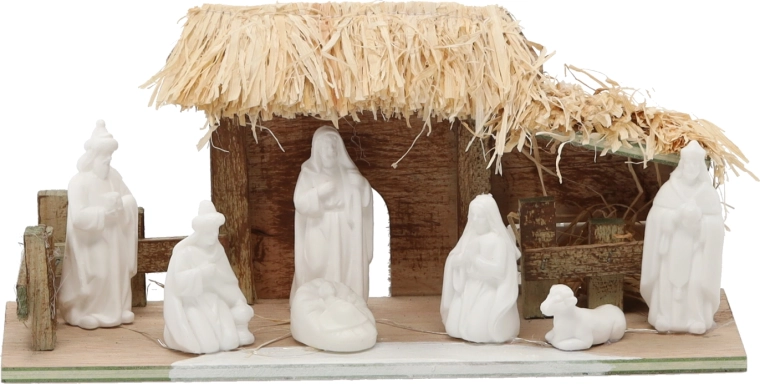 L’association du bois et d’un toit en paille offre un aspect naturel et chaleureux. La crèche s’intègre aux intérieurs rustiques, bohèmes comme classiques.