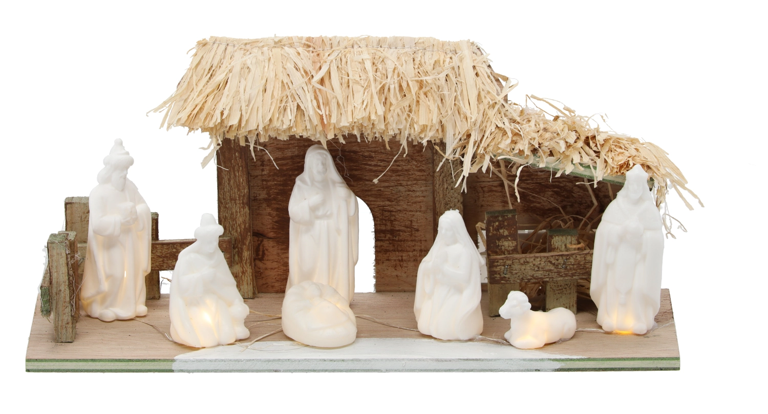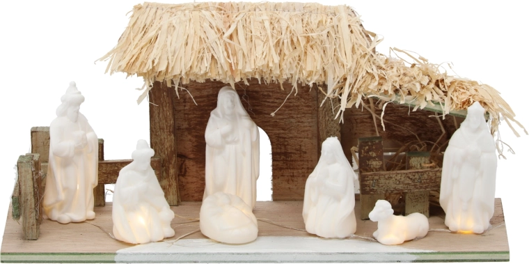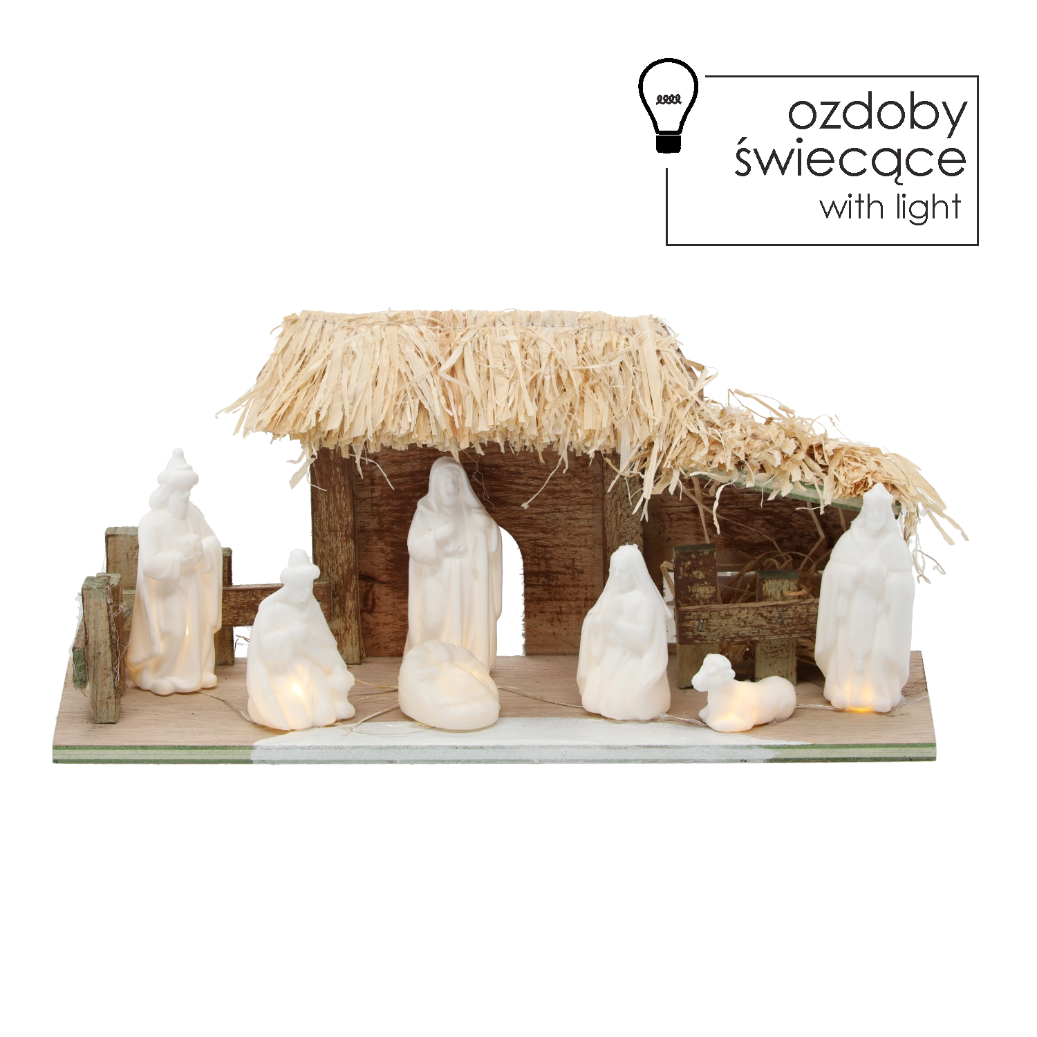 Créez une véritable ambiance de fête chez vous avec cette crèche de Noël naturelle avec éclairage LED. Elle combine l’aspect traditionnel du bois et de la paille avec une lumière LED chaude et économe en énergie, qui apporte charme et confort à votre intérieur. Grâce à ses dimensions universelles de 31 × 10,5 × 13,5 cm, elle convient parfaitement à une commode, un rebord de fenêtre, une table ou sous le sapin.