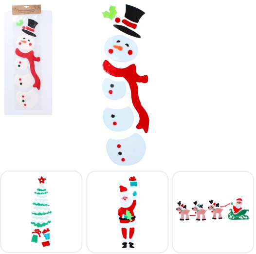 Le lot de quatre designs vous permet de combiner les motifs selon vos envies : l’iconique PÈRE NOËL, le bonhomme de neige avec écharpe et chapeau, le sapin de Noël étoilé et le traîneau avec rennes. Les éléments sont segmentés, vous pouvez donc les disposer de manière créative pour créer des compositions originales sur les fenêtres, vitrines et dans les chambres d’enfants.
